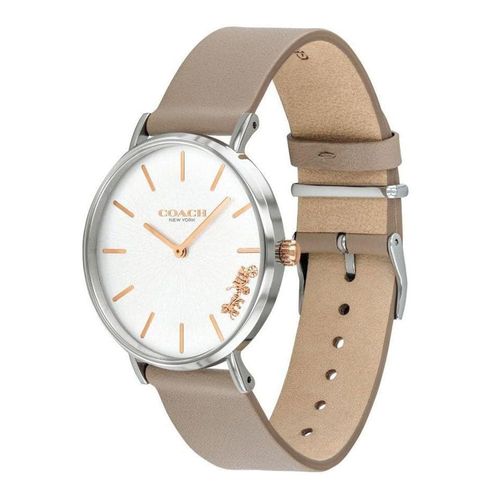 COACH PERRY ANALOG QUARTZ SILVER STAINLESS STEEL 14503119 GREY LEATHER STRAP WOMEN'S WATCH - H2 Hub Watches