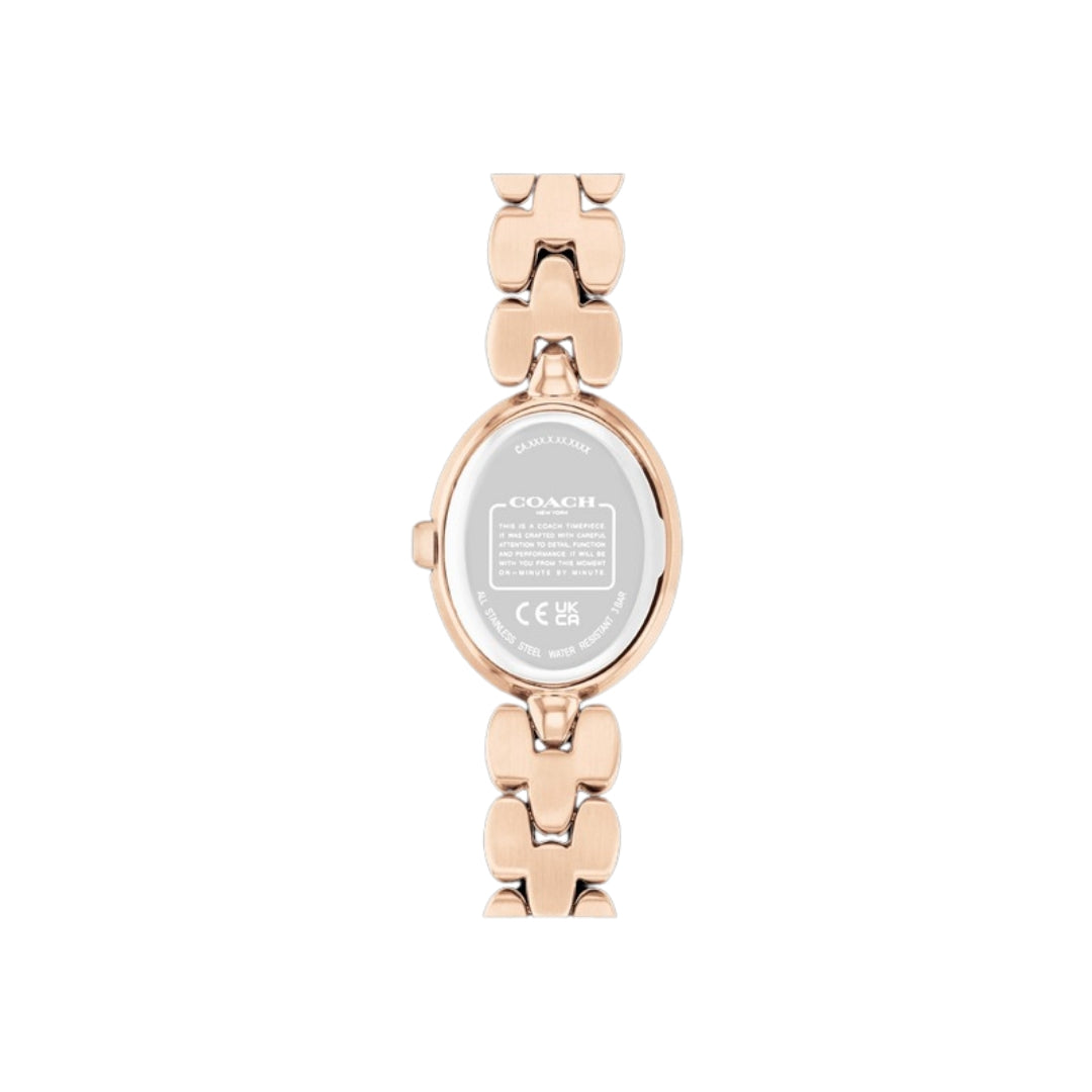 The Coach Sammy Rose-Toned Ladies Bracelet Watch combines timeless sophistication with modern design. Featuring a sleek silver-toned patterned oval dial and a rose-gold bracelet, this timepiece is perfect for any occasion.