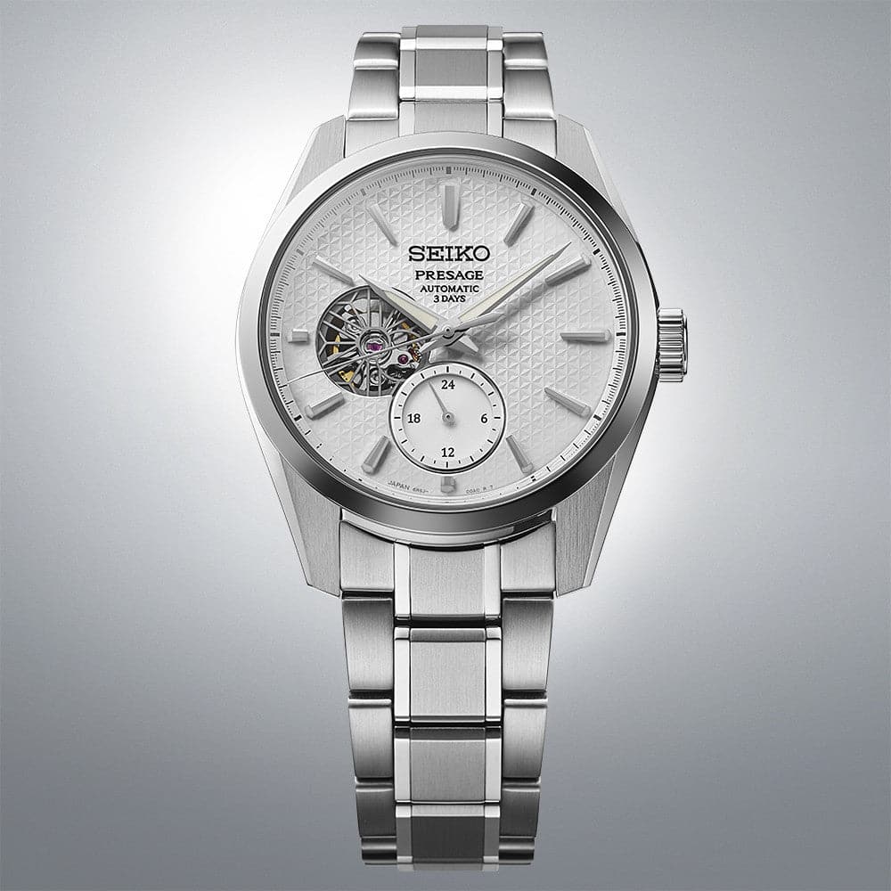 The Seiko Presage Shiro Sharp Edged SPB415J1 is a watch that embraces Japanese design and culture with a very wearable and simply beautiful watch. The inspiration behind dial is the Japanese Asanoha or hemp leaf pattern, which has been used in Japanese designs since the Heian period - well over a thousand years ago. The fibers that make up the stem were originally used to manufacture fabrics. The pattern of the leaf symbolizes strong, rapid growth and health, especially in young people. The sharp geometric pattern and rich texture of the dials creates a continuously changing image as light plays across them at different angles.. Truly mesmerising and beautiful. This also recurs in the Asanoha pattern over the open heart. Every millimeter of this watch has been thought of and appreciated, as only Seiko is capable of.