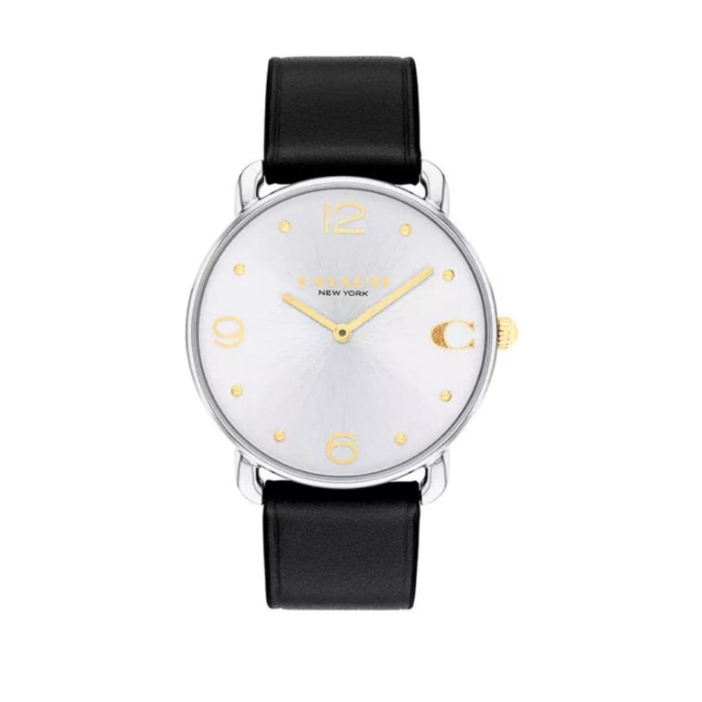 Coach New York Silver Dial Black Leather Strap Women Watch 14504198