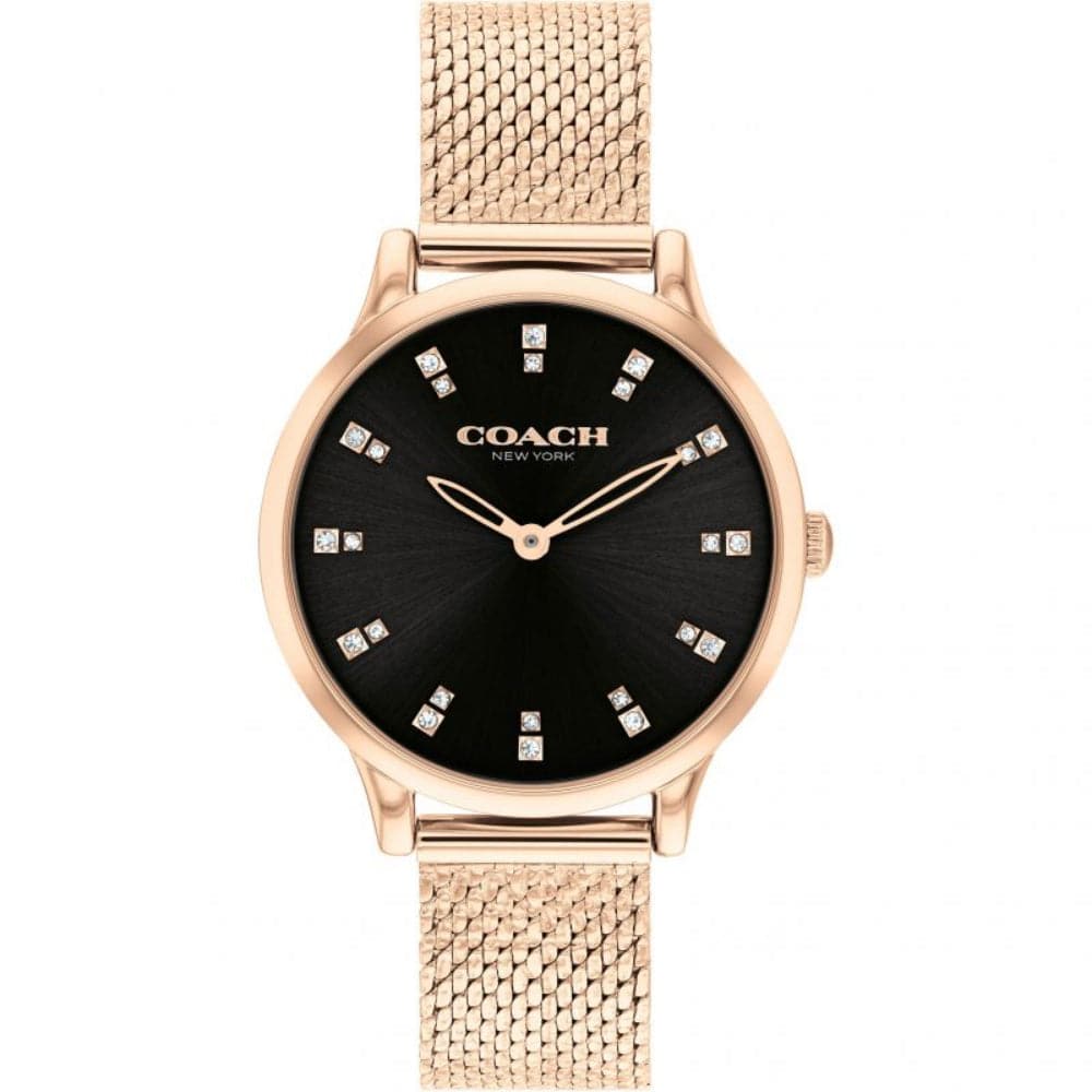 Coach New York Black Dial Rose Gold Milanese Strap Women Watch 14504217