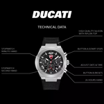 • ๐——๐˜‚๐—ฐ๐—ฎ๐˜๐—ถ ๐—ฅ๐—ฎ๐—ฐ๐—ถ๐—ป๐—ด ๐—ฆ๐—ฝ๐—ถ๐—ฟ๐—ถ๐˜: The DT014 menโ€™s chronograph embodies Ducatiโ€™s adrenaline-driven design, featuring a bold 41mm case and black transparent dial.