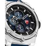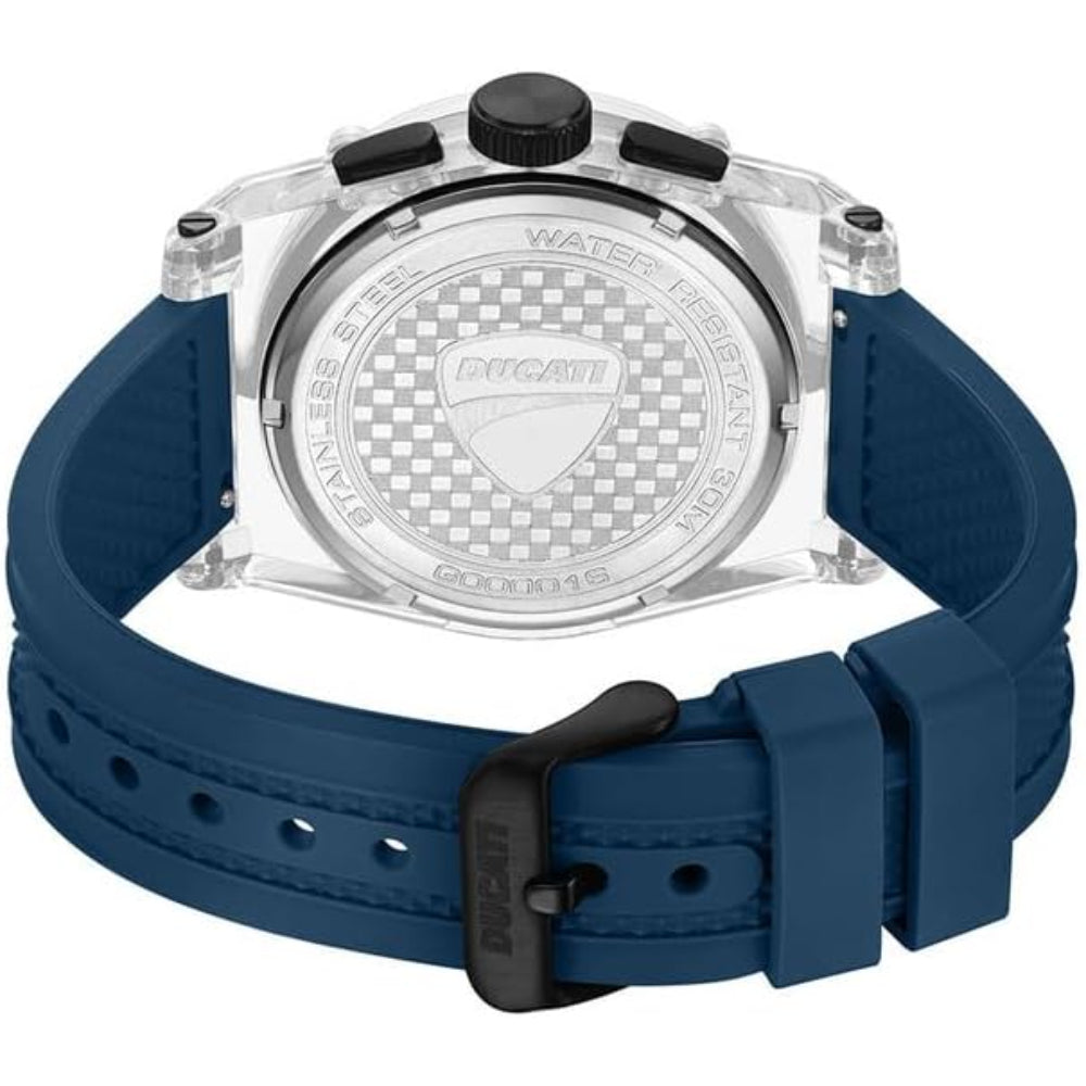 ๐๐๐ฟ๐ฎ๐ฏ๐น๐ฒ ๐ฆ๐ถ๐น๐ถ๐ฐ๐ผ๐ป๐ฒ ๐ฆ๐๐ฟ๐ฎ๐ฝ: Finished with a flexible blue silicone strap, ensuring all-day comfort and Ducati-grade performance.