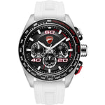 - 𝗕𝗼𝗹𝗱 𝗗𝗲𝘀𝗶𝗴𝗻: The 44mm brushed case with white silicone strap offers a sleek, sporty look that combines refinement and durability, perfect for everyday wear or motorsport-inspired style.