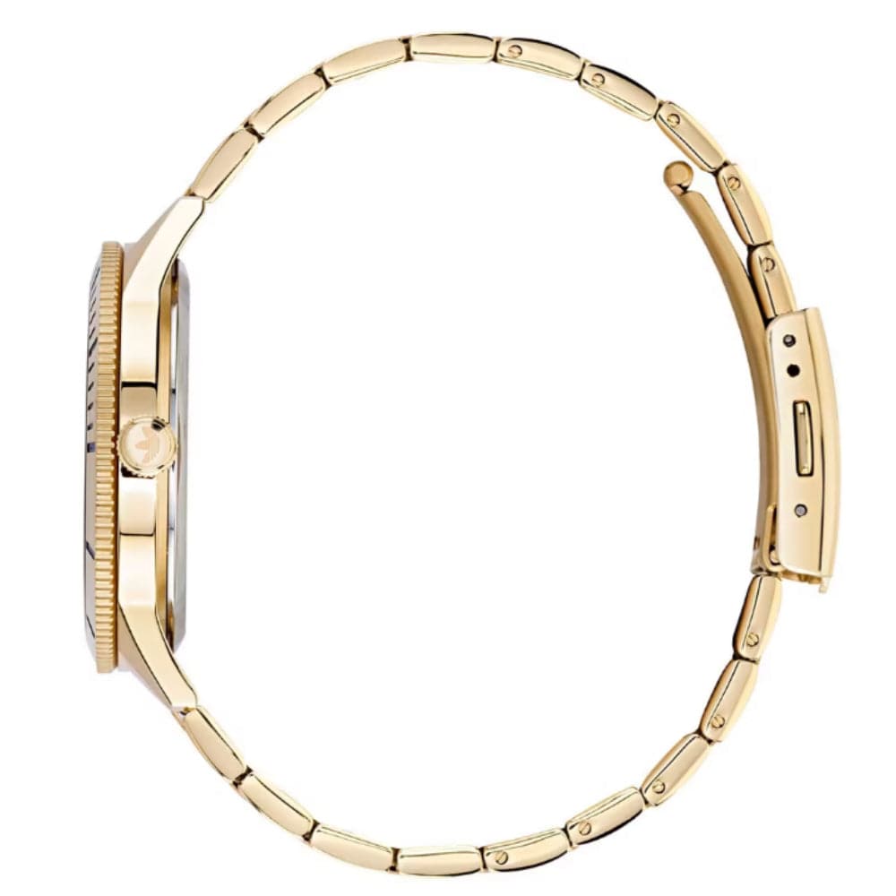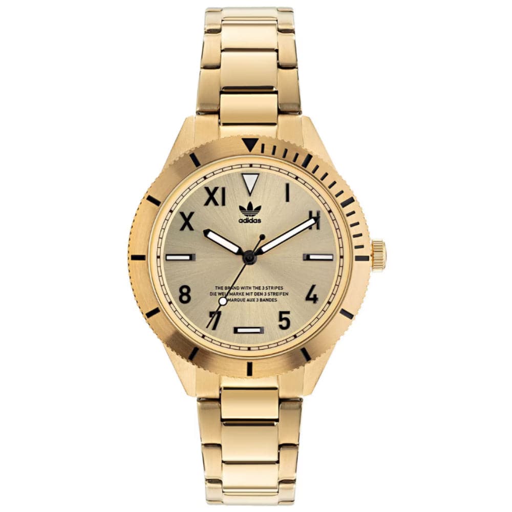 If you haven't found the perfect gold-colored watch yet, be sure to check out the Fashion Edition Three AOFH22061 from Adidas. This model impresses not only with its shade, but also with its minimalism and timelessness. A proven quartz movement is responsible for the precision of the measured hour.