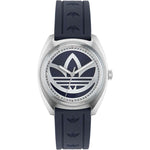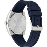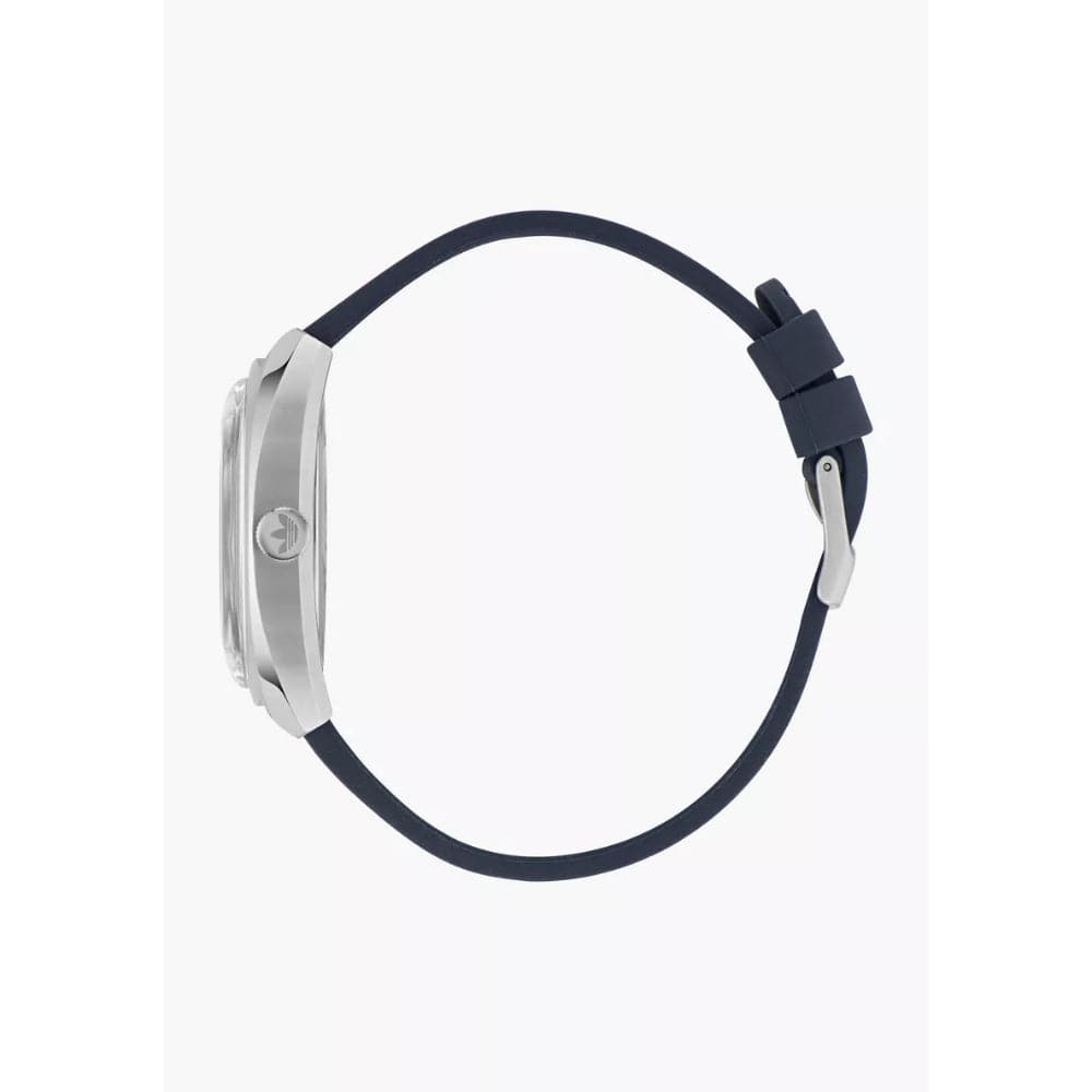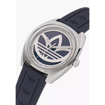 The adidas Originals Edition One AOFH23014 unisex watch is a subtle accessory ideal for everyday wear. The navy blue bracing dial is complemented by the manufacturer's logo. A silicone strap has been paired with a steel envelope. The device is driven to function by a quartz movement. You can take a shower with the model.