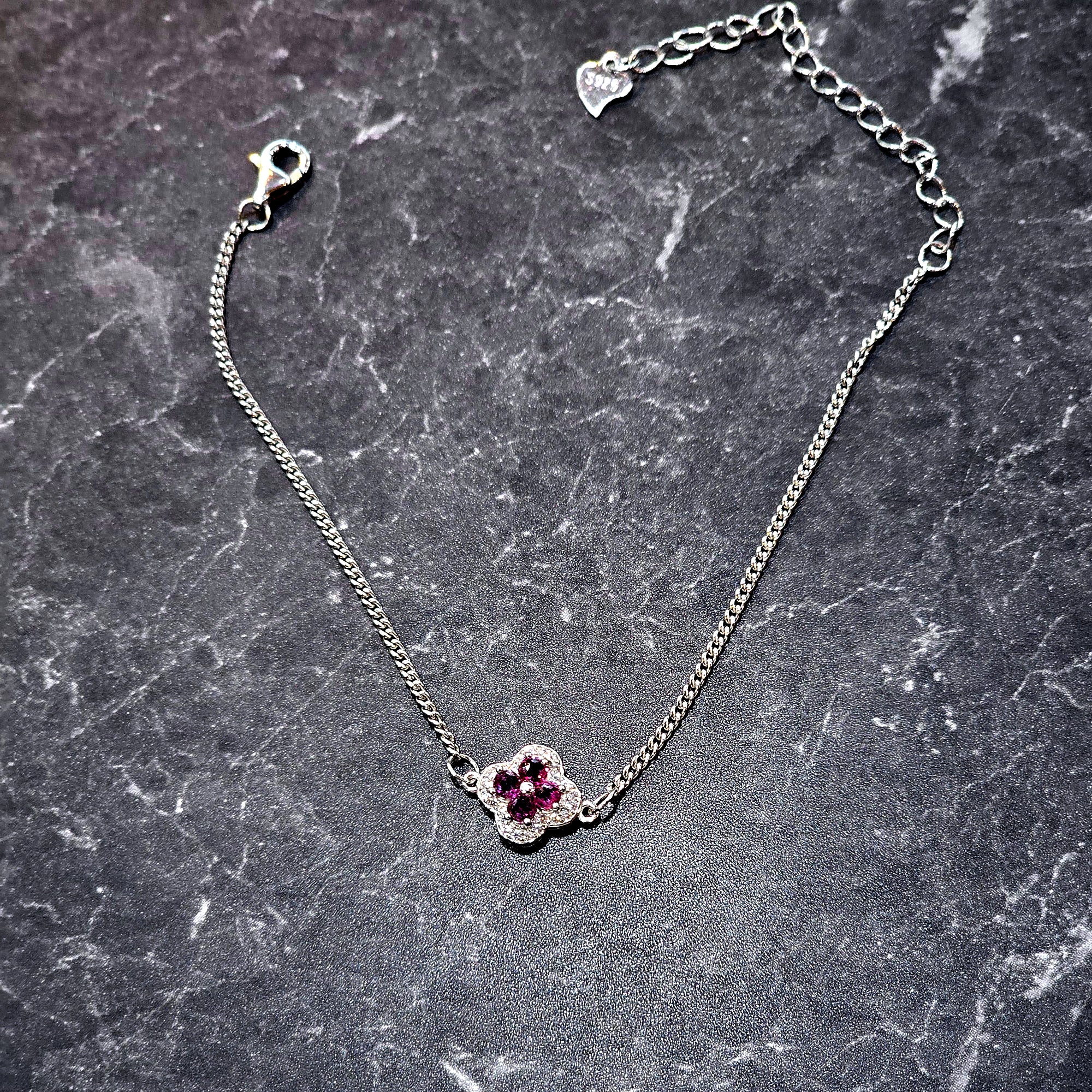 The Blossom Aura Bracelet from AG Collective Jewelry captures the essence of delicate femininity and timeless charm in a single, elegant piece. Crafted in radiant silver, the centerpiece of this bracelet features a soft floral motif adorned with pink-hued crystals, delicately framed by a shimmering halo of micro pavé stones.