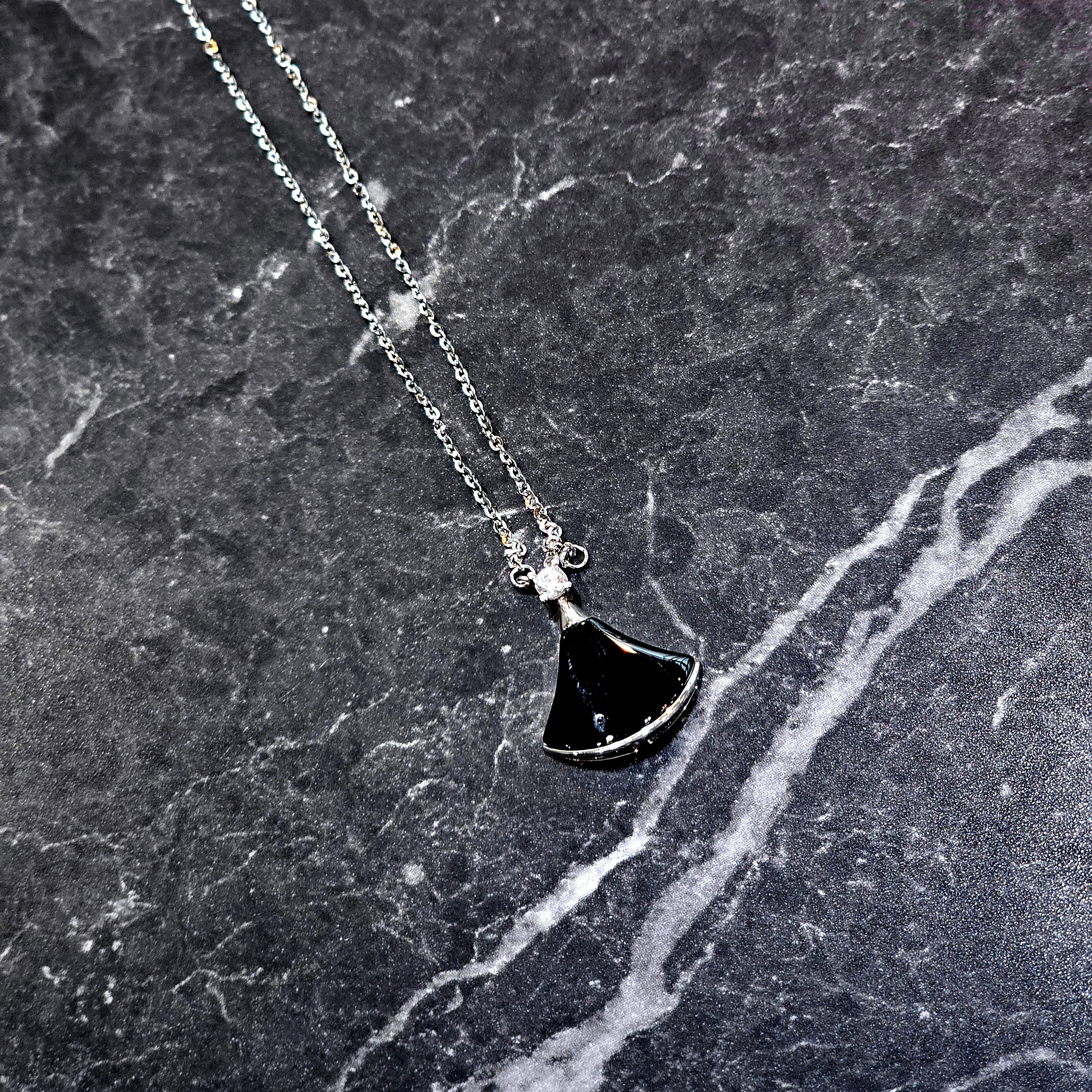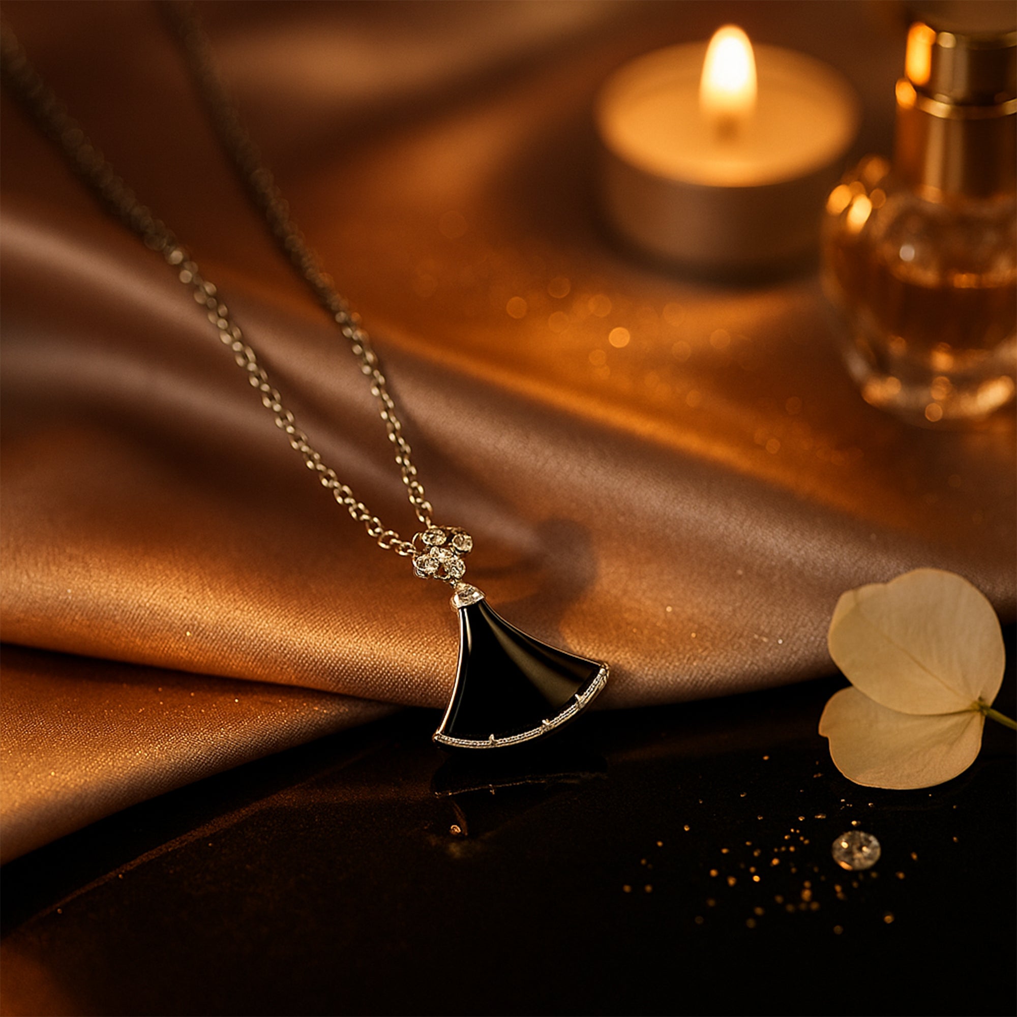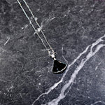 The Noir Belle Necklace from AG Collective Jewelry is where modern minimalism meets timeless elegance. With a fan-shaped black gemstone pendant framed in polished silver, this necklace evokes the poise of a vintage evening dress and the quiet strength of a midnight breeze.