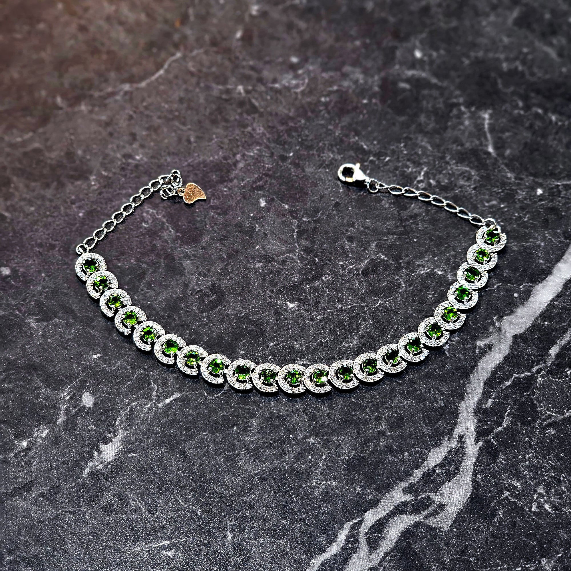 Finished with an adjustable clasp for a comfortable fit, the Verdant Halo Bracelet is a striking yet refined piece that exudes timeless charm and modern confidence.