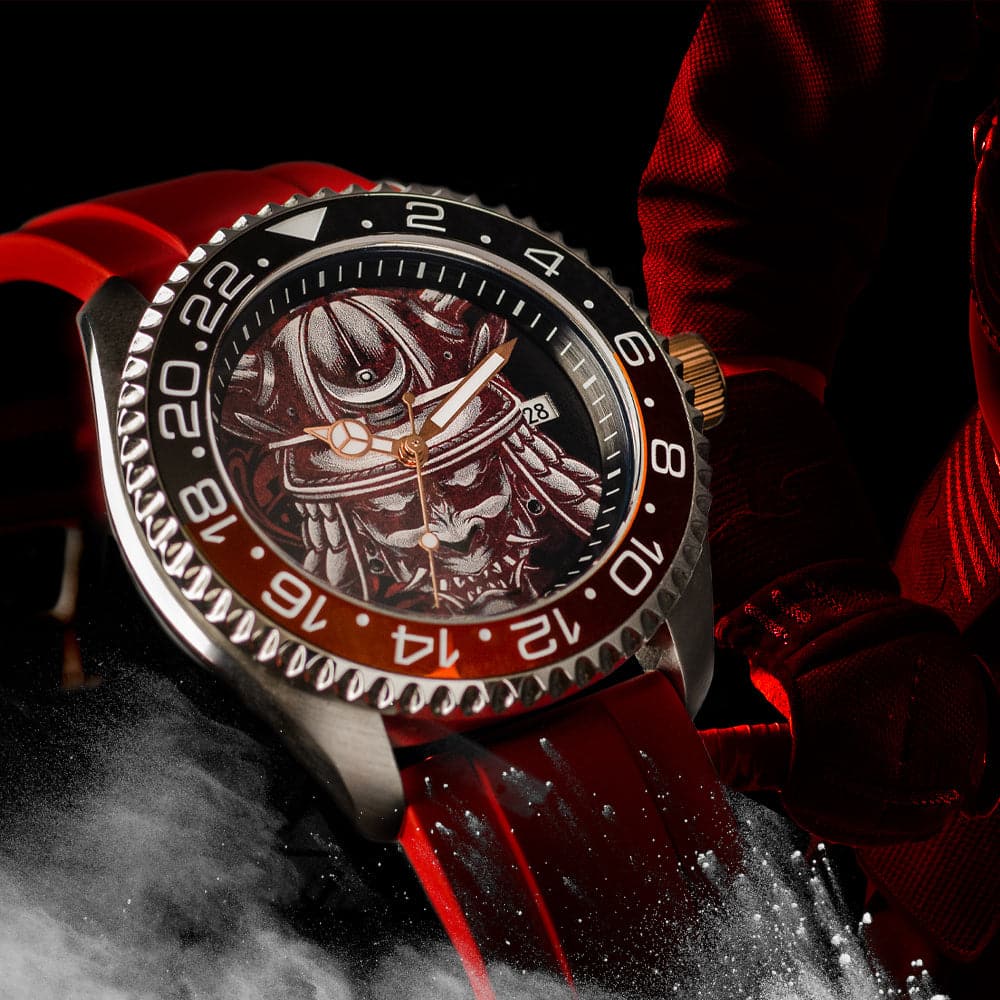 Crafted for the modern warrior spirit, The Samurai Code Series is not just a watch, it's a statement. It's a marriage of sleek, contemporary design and unwavering performance, paying homage to the unyielding principles of the samurai. Bold and unmistakable, just like its namesake predator, this watch commands attention. Bold applied indexes and a diverse range of bezels, from ceramic GMTs to dive timers, let you choose your weapon of style. Brushed stainless-steel options with recessed indexes offer a touch of understated elegance. The Samurai Code Series is powered by a reliable Miyota automatic caliber, proven and tested for unwavering accuracy. This watch won't let you down when the stakes are high. Own your code. Own your time. Own The Samurai Code Series.