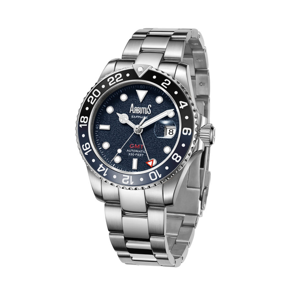 ARBUTUS Dive Inspired GMT AR2502SUS is designed not only for frequent traveler but also designed for a man's everyday wear that fits his taste and lifestyle. The collection features a GMT function and a rotatable bi-colored bezel (24-hour scale) which can doubles as a day/night indicator. To further enhance your outfit, the ARBUTUS Dive Inspired GMT AR2502SUS is fitted with a stainless steel bracelet that sit beautifully and comfortably on the wrist throughout the day.