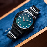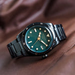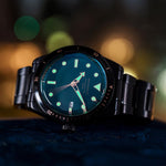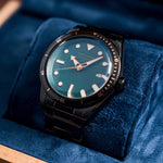 The Black Sea, our first ever dive watch. One that takes the form of a design over half a century old that is still as distinct and timeless today. One that took over six months of painstaking research and development, gruelling tests and quality control standards to produce. And here it is. With a boxed mineral-crystal set atop a brushed 43mm stainless-steel case. The Black Sea is as much a statement of what a modern dive watch is, and what we believe it should be. A unique semi-skeletonized hand set and applied indexes, generously coated with Super Luminova for uncompromised visibility even in the darkest of depths, ensures that there is no mistaking the Black Sea for what it is on your wrist. Powered by a workhorse Seiko time-corp NH35a, performance and reliability are guaranteed even in the most trialling of conditions. With 3 different dial textures and strap options ranging from either leather or stainless-steel to choose from. Whether it is under a cuff or the crushing depths of the ocean there is no situation where the Black Sea will not find itself at home.