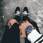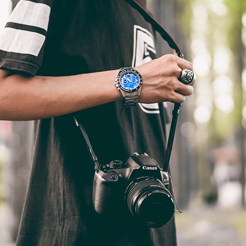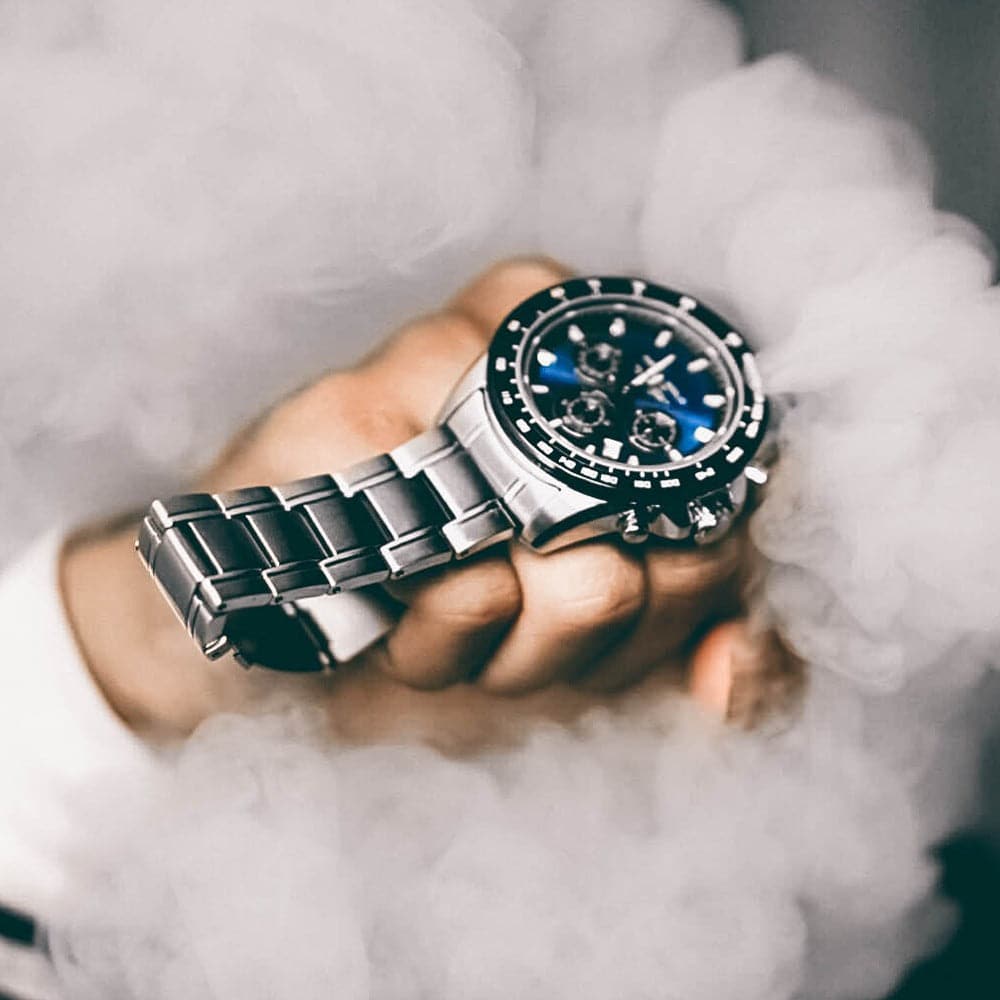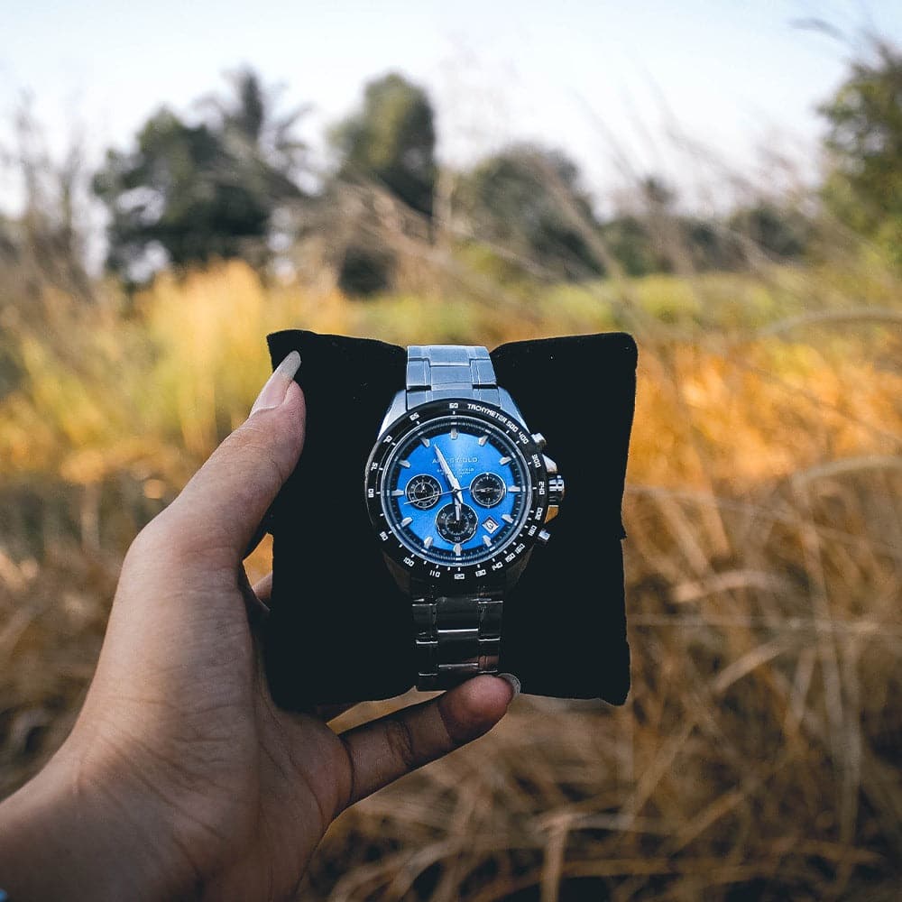 For racing purists, there can be no greater individual thrill than that of drifting. Wheels lock in controlled mechanical symphony, while tyres leave their various artistic impressions on the tarmac. And to commemorate this electrifying automobile pursuit, the Drifter, sporting a stainless-steel strap and tachymeter for on-the-go speed measurement, has been created. Internally, its metallic dial surface extends a solid, masculine presence to surrounding luminous markers that enhance low-light visibility. The dazzling array of colour options available is symbolic of dynamic lighting, especially in the vibrant night drifting scene – a frenetic, turbo-charged environment where the Drifter never fails to leave its mark.