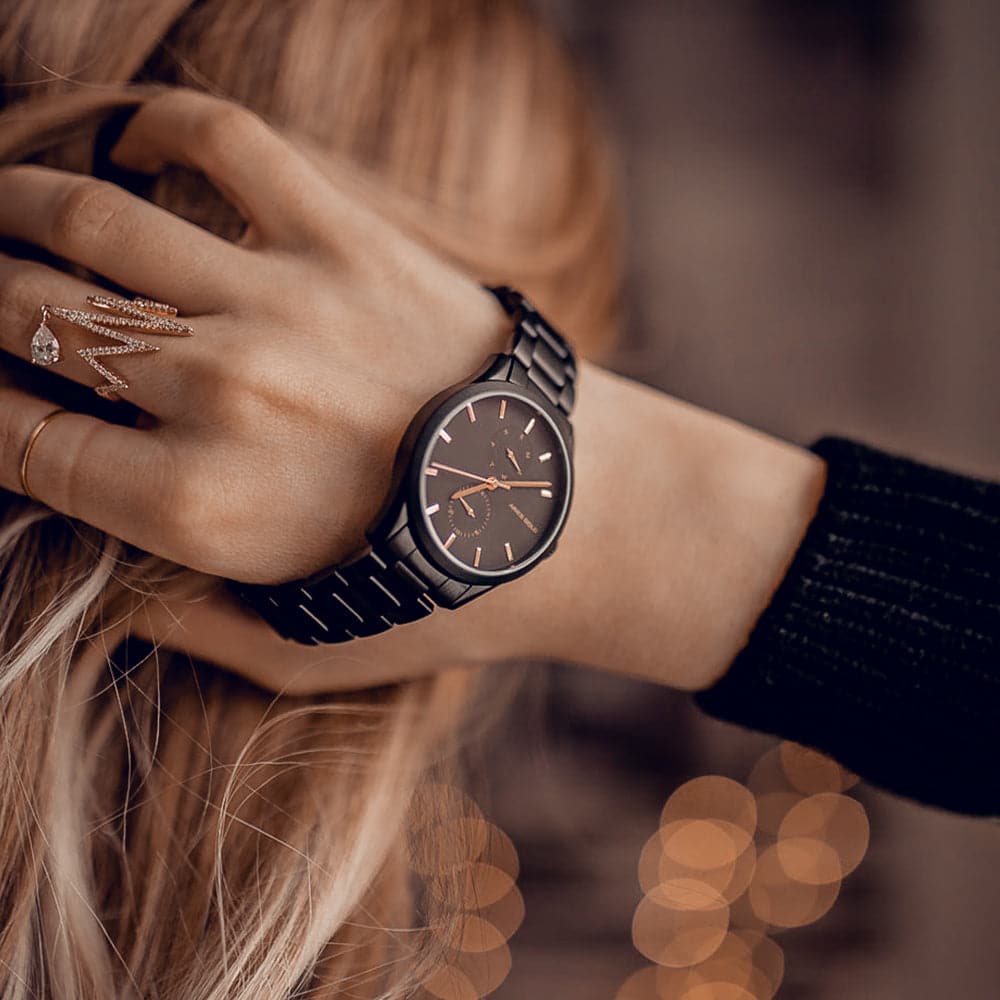 A nod to the ever recognizable, minimalist Bauhaus design. With slender baton markers and hands with equally simples subdials, the Liberty is an effortlessly versatile design that will always look stunning, no matter what you pair it with.