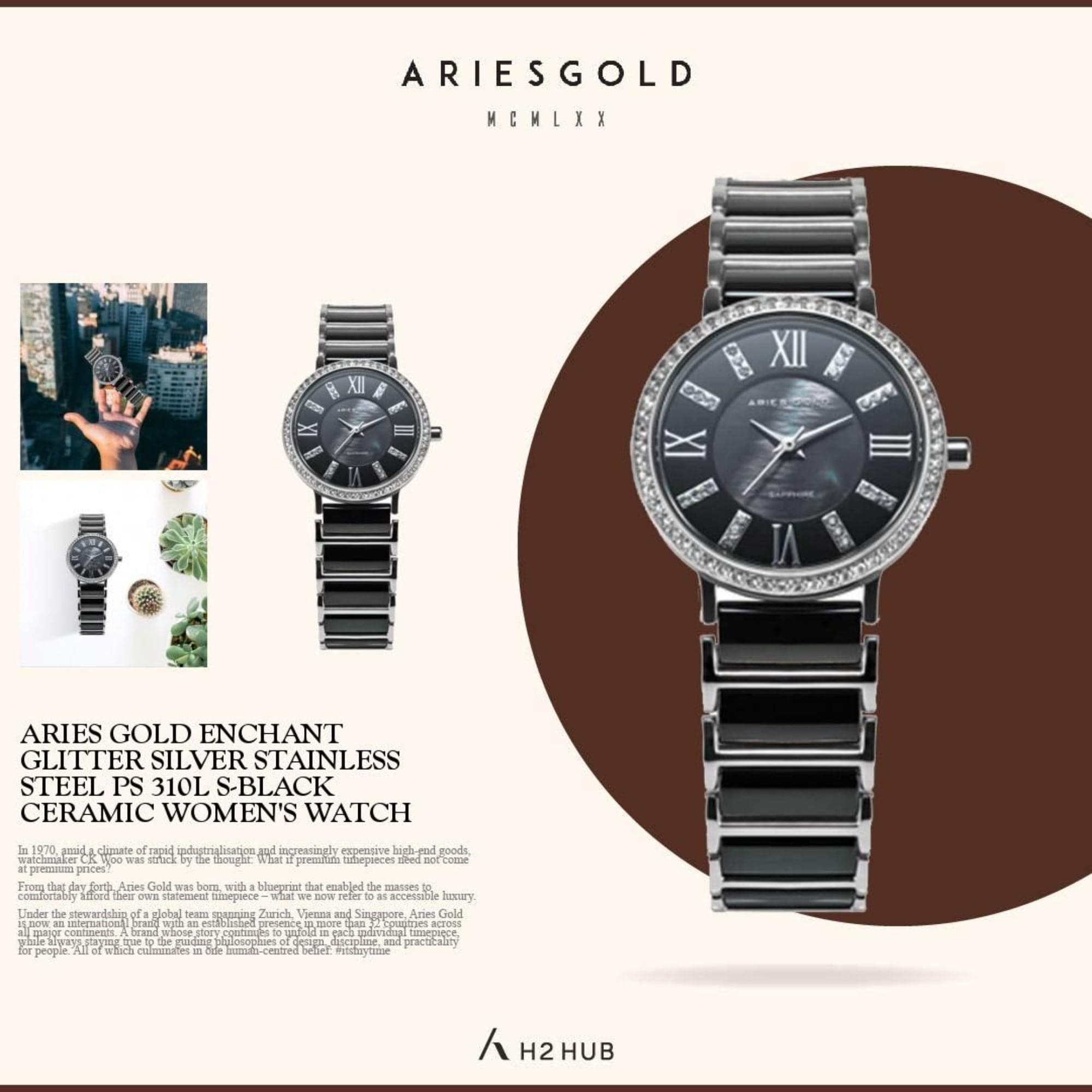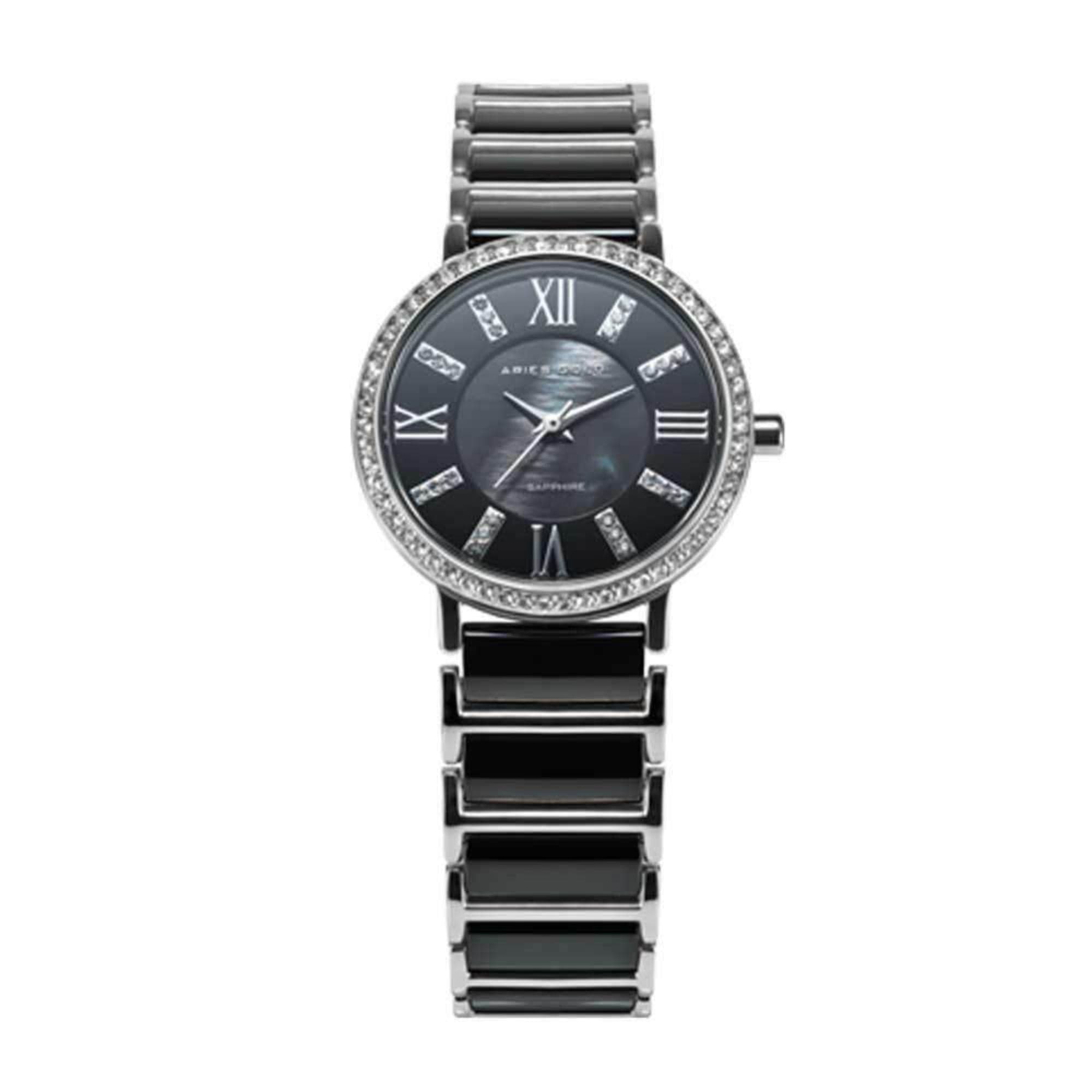 ARIES GOLD ENCHANT GLITTER SILVER STAINLESS STEEL PS 310L S-BLACK CERAMIC WOMEN'S WATCH