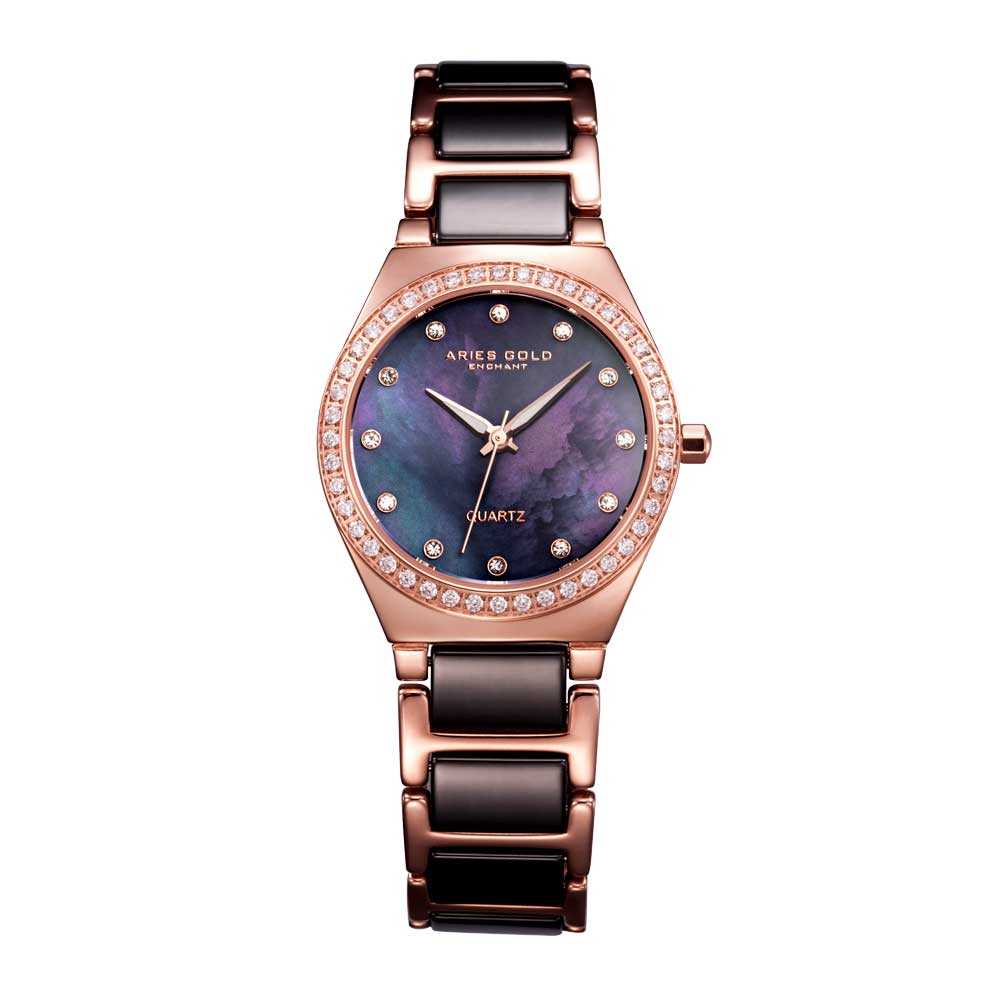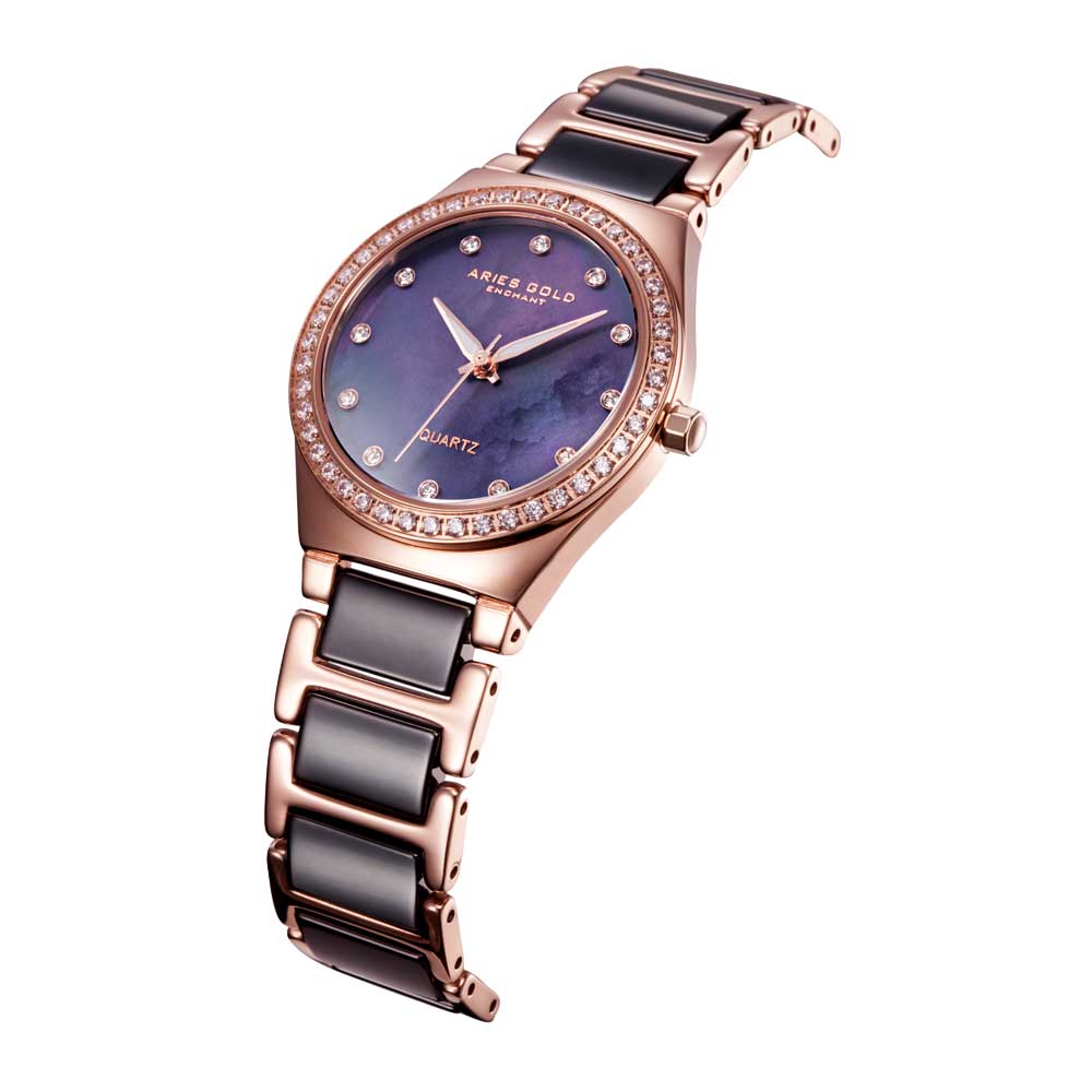 ARIES GOLD ENCHANT ROSE GOLD STAINLESS STEEL L 5014Z RG-BKMOP CERAMIC WOMEN'S WATCH