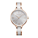 A slender elegant case housing a stark sunray dial adorned with applied baton indexes and slim sharp hands. Paired on an extra slim 3-piece bracelet with a mixture of ceramic and steel to make for a perfectly sophisticated match. The Venise is the embodiment of feminine charm and modern refinement.