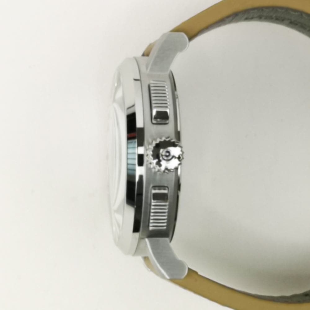 A vintage style rounded and brushed case leading to straight simple lugs offers an unmistakable and distinct silhouette.