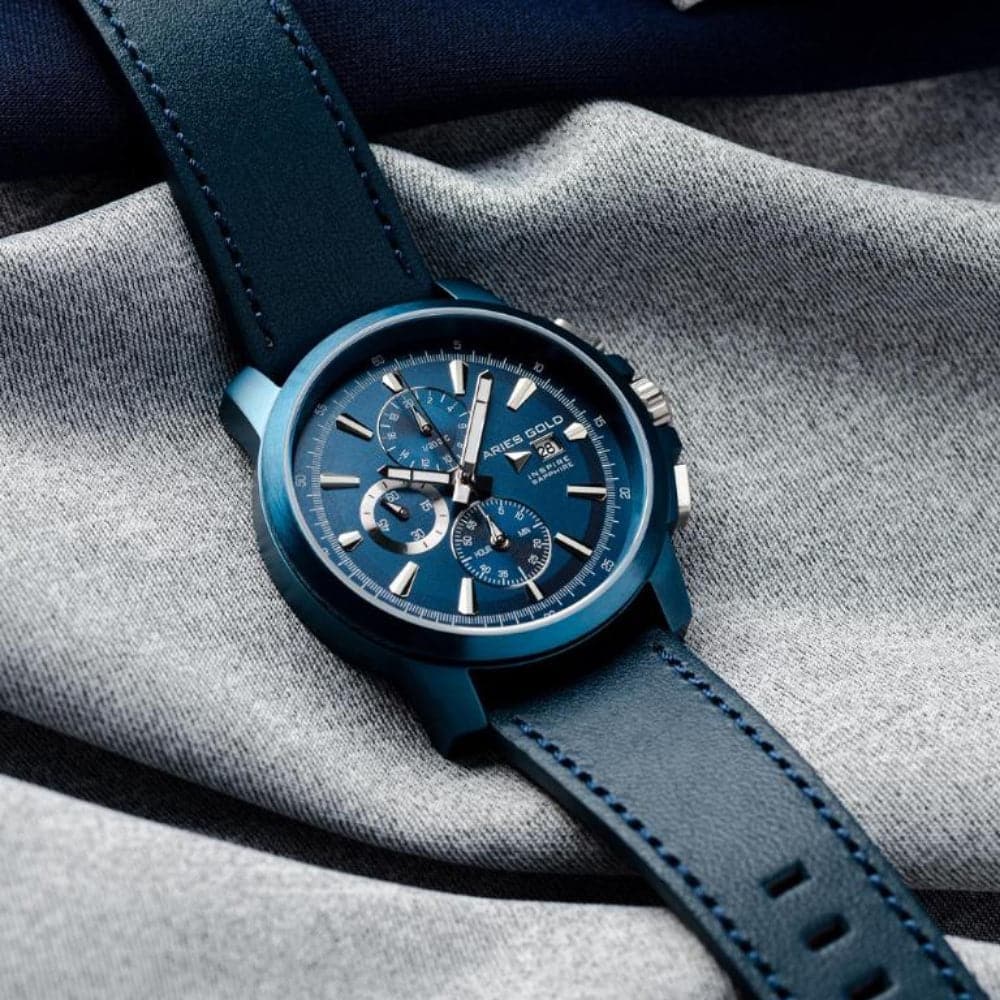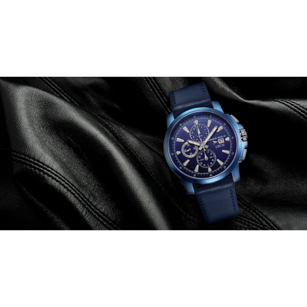 ARIES GOLD INSPIRE CONTENDER BLUE STAINLESS STEEL G 7301A BU-BU BLUE LEATHER STRAP MEN'S WATCH