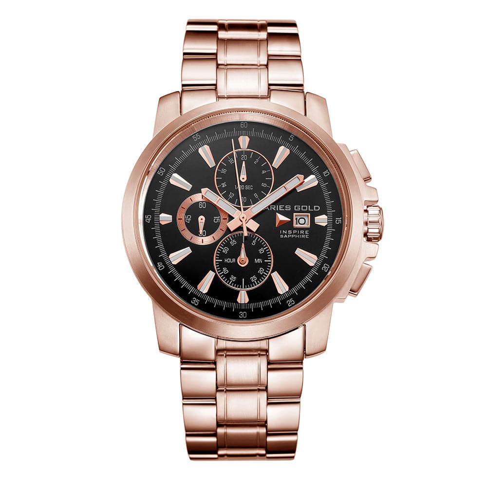 ARIES GOLD INSPIRE CONTENDER G 7301 & B 7302 RG-BKRG COUPLE'S WATCHES