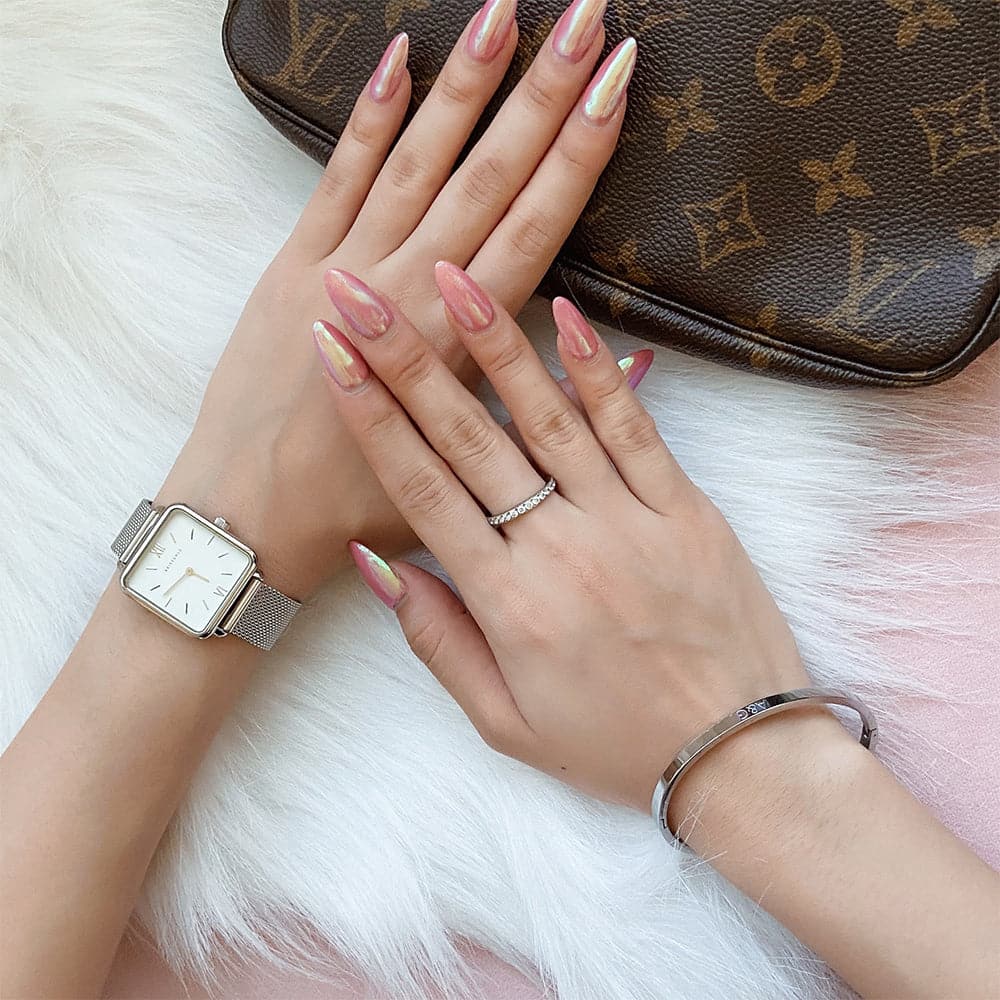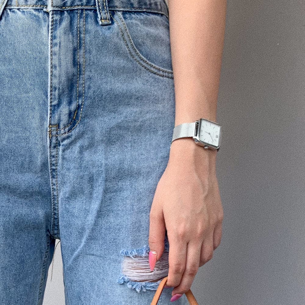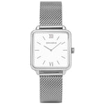 An elegant and distinctive squared case, and a clean white/black dial with slim baton markers make for a design that harks to the luxurious bohemian style timepieces of old. Paired with a vintage style Milanese mesh bracelet, the Minuit is a distinctive modern classic for the modern woman.