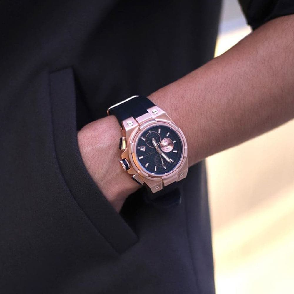 The horological brethren of our classic King series, the equally imperious Monarch evokes a magnificence borne of superior craftsmanship and aesthetic detailing – attributes that enable this 45mm satin-brushed timepiece to rise above the humdrum of the everyday, and take pride of place on only the most discerning wearers’ wrists. The intricate carbon fibre dial, assembled through an exacting hi-tech engineering process, radiates grandiose ambition, accompanied by stainless steel casing and durable silicone strap. A Japanese chronograph movement ensures precise timekeeping, while the metallic left subdial provides a majestically executed exercise in disruptive embellishment.