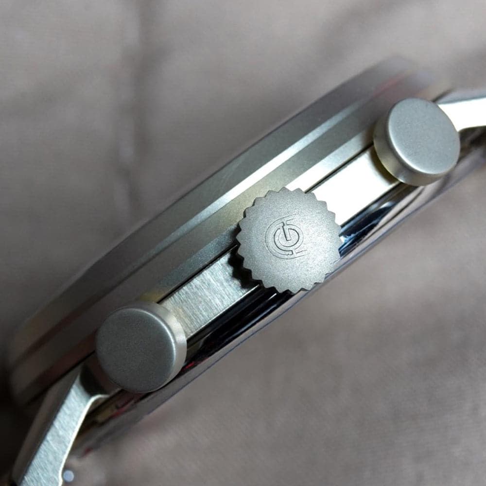 A simple and vintage brushed case paired with subtle piston style pushers and leading to straight lugs. The perfect finishing touch to a timelessly classic design.