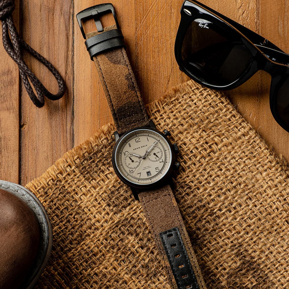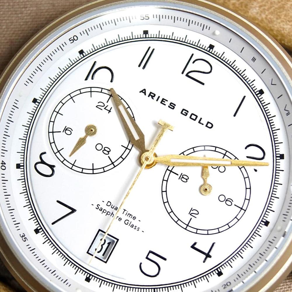 Journey 1025 is a very attractive vintage design chronograph dress watch that is inspired by the design of chronograph watches in the 1960s. The simple texture of the dial with the detailed markers give it a reminiscent of the European watches built in the 1960s. The Japanese movement gives it an unwavering accuracy. 2 of the SKUs within the Journey Collection also features a unique luminated watch dial specially researched and developed by the Aries Gold team. The entire underlying watch dial glows in the dark, together with the markers and the watch hands, making it stand out from the rest of the other chronograph watches in the market. The leather strap is also of high quality with the signature quick release function from Aries Gold.
