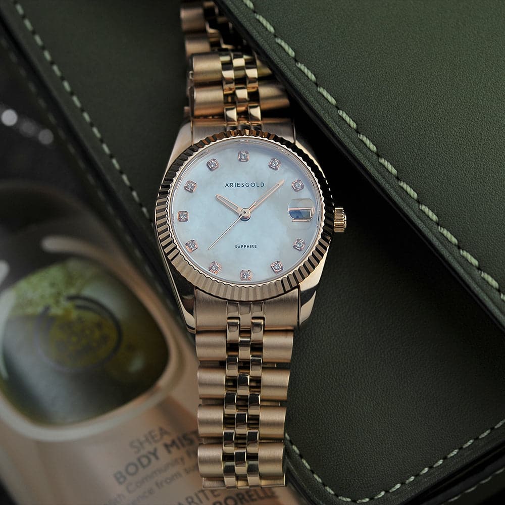 The Heritage collection series celebrates the tradition of watchmaking by presenting a range of classic designs that are both luxurious and timeless. The ARIES GOLD Heritage watch is one of the collections from the Heritage series which has a diameter of 33 mm made of the highest grade sapphire crystal material with stainless steel which makes this watch resistant to impact, scratches and corrosion resistance. It also has interesting features such as Swiss movement, water resistance up to 5 ATM, luminous hands and indexes also has a date display.