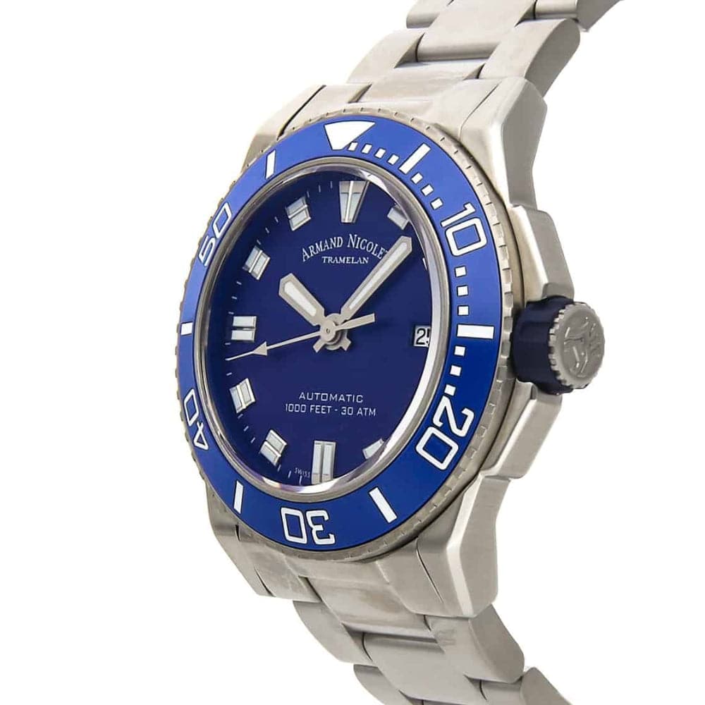 Calibre AN200 for Date (based on ETA 2824-2 modified per Armand Nicolet’s specifications). Dial with luminous indexes and hands. Case with antiglare treated sapphire crystal. Screwed back. Turning black ceramic bezel.