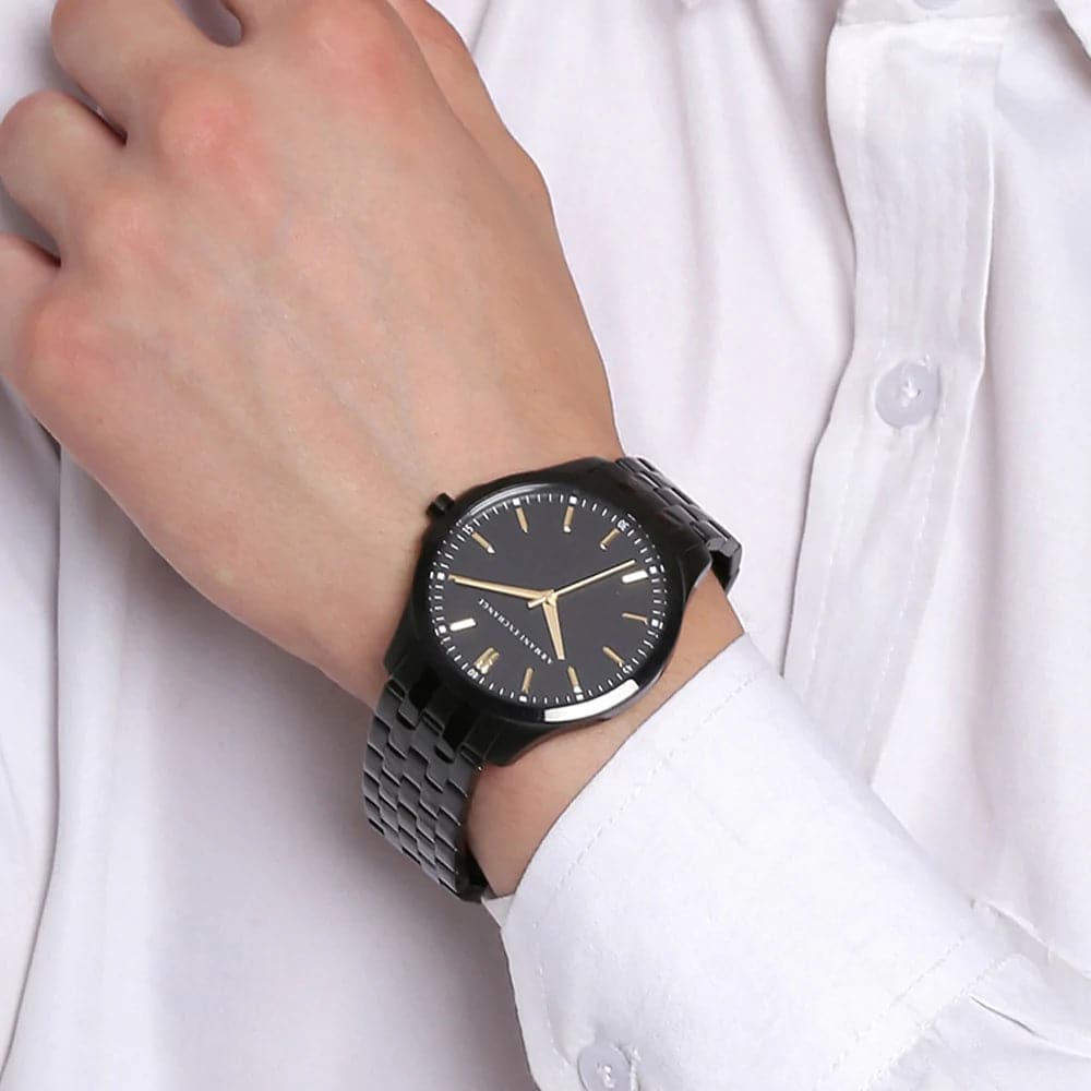 Armani Exchange AX2144 is an amazing and special Gents watch. Case material is Black Ion-plated Steel while the dial color is Black. 50 meters water resistance will protect the watch and allows it to be submerged in water for periods, so can be used for swimming and fishing. It is not recommended for high impact water sports. The watch is shipped with an original box and a guarantee from the manufacturer.