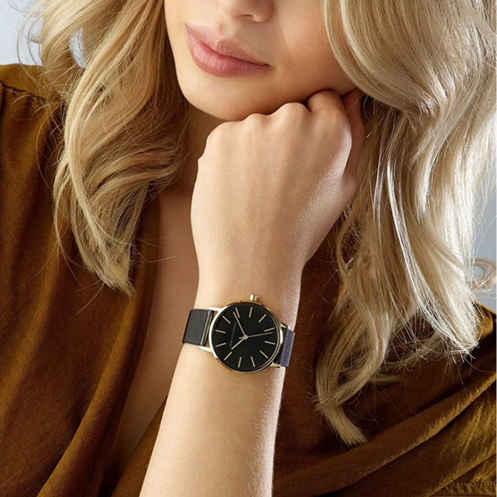 Armani Exchange AX5548 is an amazing and trendy Ladies watch. Case is made out of PVD Gold plated and the Black dial gives the watch that unique look. 50 meters water resistance will protect the watch and allows it to be submerged in water for periods, so can be used for swimming and fishing. It is not recommended for high impact water sports. We ship it with an original box and a guarantee from the manufacturer.