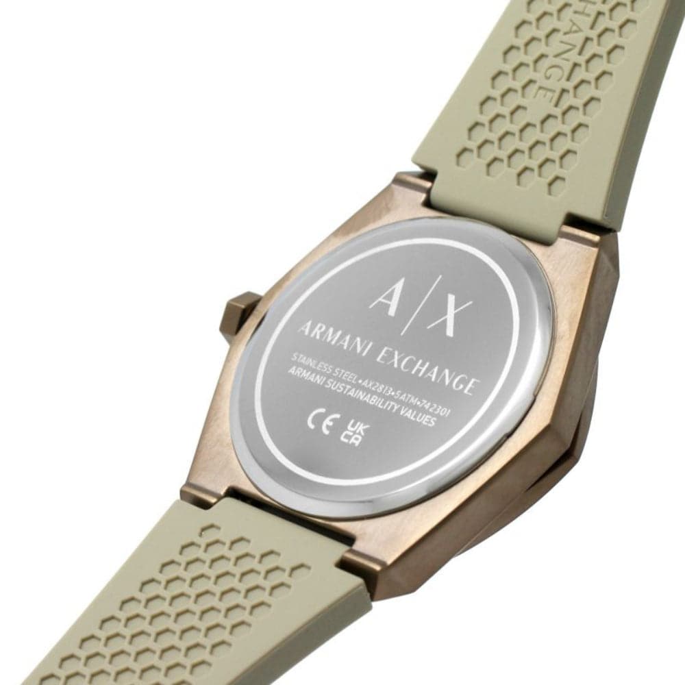 Armani Exchange AX2813 is a functional and handsome Gents watch. Case material is Stainless Steel, which stands for a high quality of the item while the dial color is Brown. This model has got 50 meters water resistance - it can be submerged in water for periods, so can be used for swimming and fishing. It is not recommended for high impact water sports.