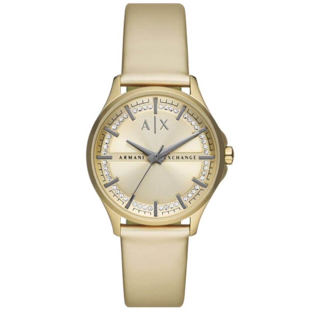 Armani Exchange AX5271 is a beautiful and interesting Ladies watch. Material of the case is Stainless Steel, which stands for a high quality of the item and the Gold dial gives the watch that unique look. In regards to the water resistance, the watch has got a resistancy up to 50 metres. It means it can be submerged in water for periods, so can be used for swimming and fishing. It is not recommended for high impact water sports.