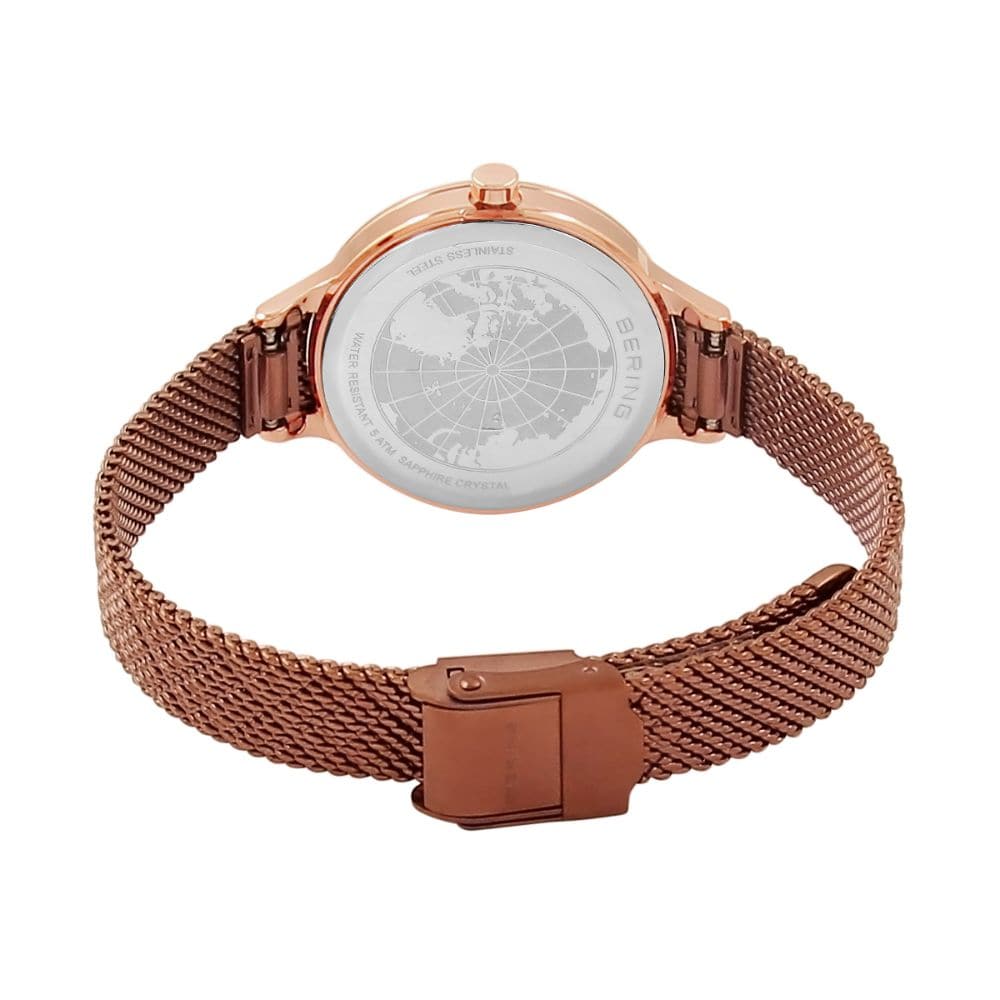 Bering Time’s touted classic collection brings us a timepiece with more resemblance to jewelry rather than a traditional watch. Every visible component of this timepiece has been dipped in rose-gold, from the highly-durable Milanese strap to watch hands and indices.