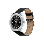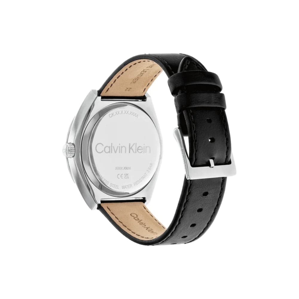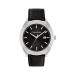 Calvin Klein Men's Silver Stainless Steel Quartz Date Black Dial Black Leather Strap Watch.