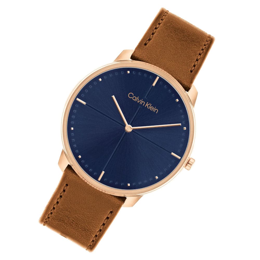 Calvin Klein Blue Dial Brown Leather Strap Men Watch 25200154
