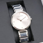 Revamp your style sense by wearing the Calvin Klein watch with a minimalistic design and an open dial characterized by four crystal settings encased in a classic round metal case. True to its name, the Minimalistic T Bar collection takes one step ahead in your fashion journey with a refined open-link bracelet that adds a tinge of uniqueness to your presence.