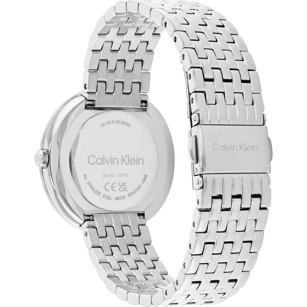 This Calvin Klein watch has a case made of stainless steel with a diameter of 34 mm and is fitted with a metal band. Inside the case lies a Epson movement and the watch features a Mineral crystal.