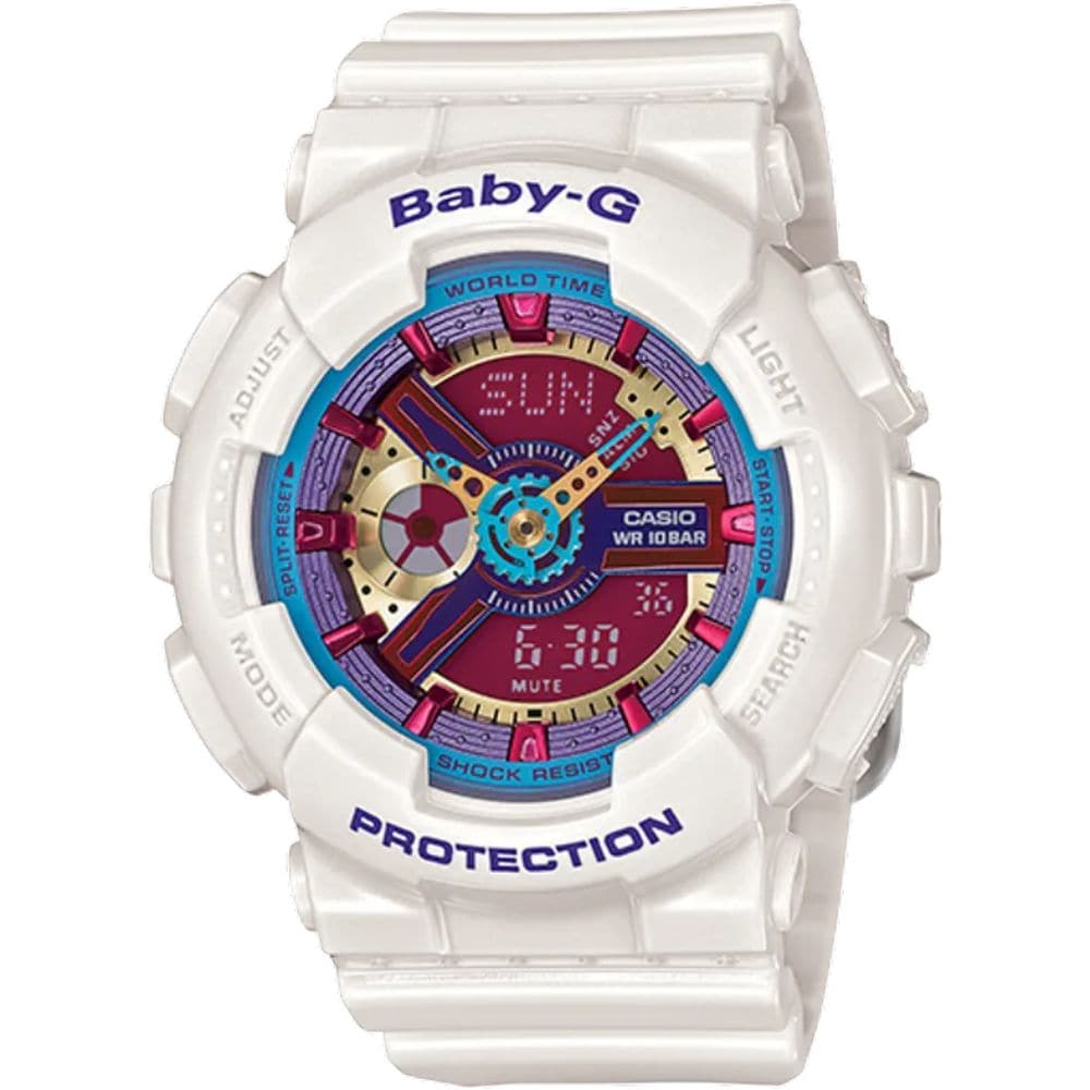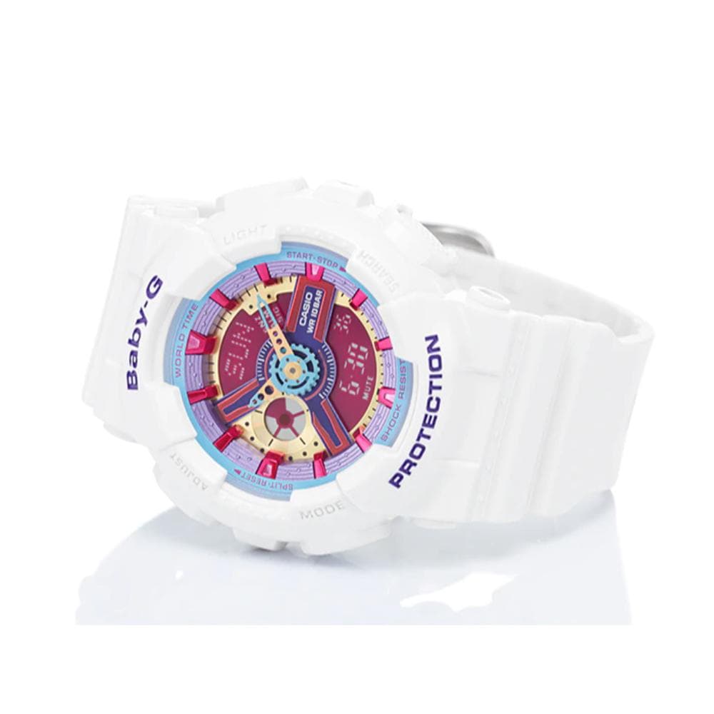 Here is some exciting new color for the popular BA-110 Series. Simple white case and band, is combined with colorful and metallic face designs. The complex combination of parts in the face results in a modernly fashionable analog-digital design. All of this makes this watch the perfect blend of coolness, toughness, and feminine fissionability.