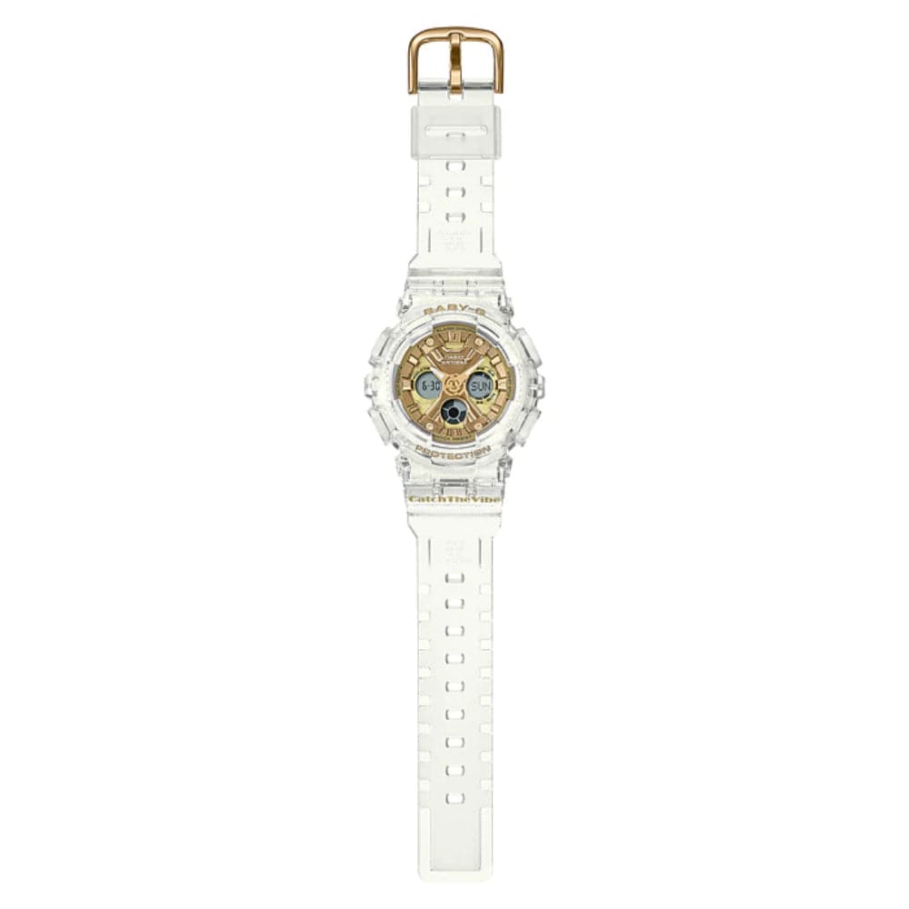 The “Catch The Vibe” message printed on the watchbands embodies the hip-hop culture of the '90s and early 2000s, bringing back that edgy retro vibe in a truly special timepiece. This BABY-G will get your heart racing and ready for dance mode.