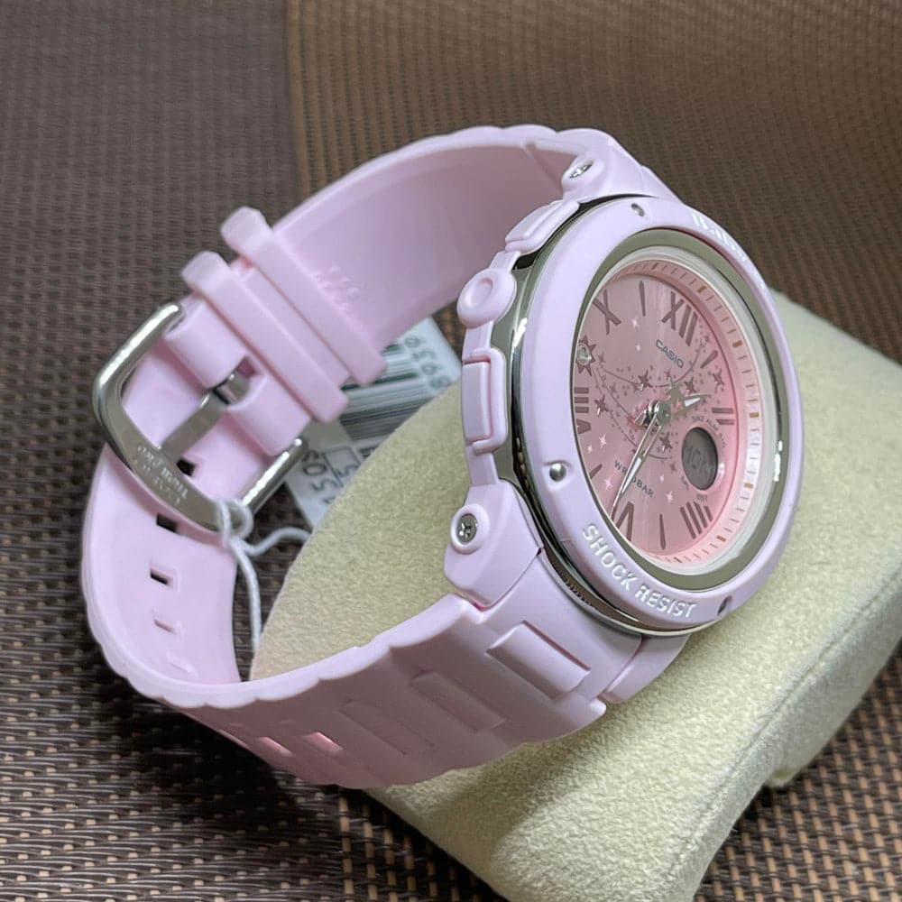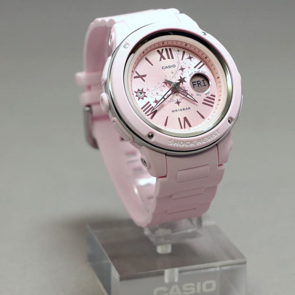 From BABY-G, the casual watch for active women, come new models decorated with sea glass colors. Sea glass is natural frosted glass found on beaches along bodies of salt water, which takes decades to acquire its characteristic texture and shape. The blue, pink, and white matte semi-transparent material used for the cases and bands of these models creates a sea glass like look. Glittering gold metal parts on the faces create the image of light reflecting from sea glass for designs that are perfectly suited for summertime beach wear.