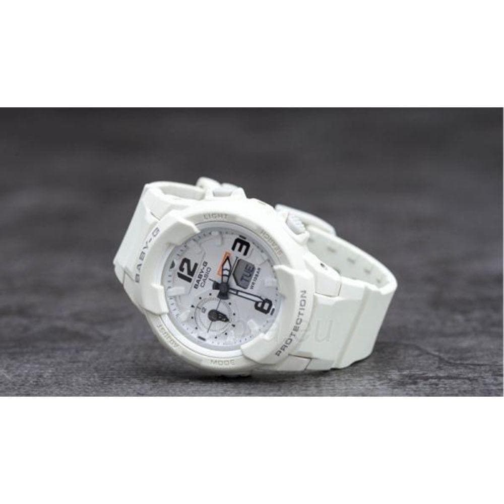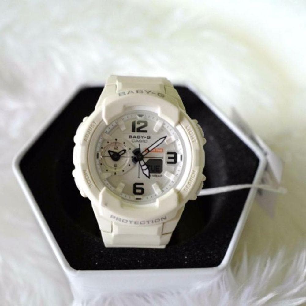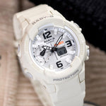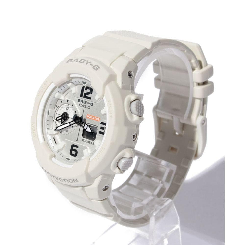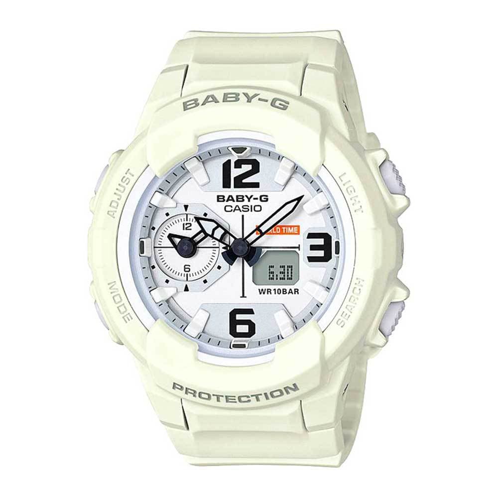 Introducing a collection of new unisex designs with simple functions as the latest addition to the BGA-230 Series. This lineup features five colors: fashionable beige and khaki earth tones, popular white and black and manly orange. Large, three-dimensional hour numbers improve readability. Dual Dial World Time shows the current time in one other time zone using a small dial at 9 o'clock. This and much more provides plenty of support for the world-travelling woman on the go. Coordinating equally well with cool and casual, these designs are great choices for women who prefer a mannish look.