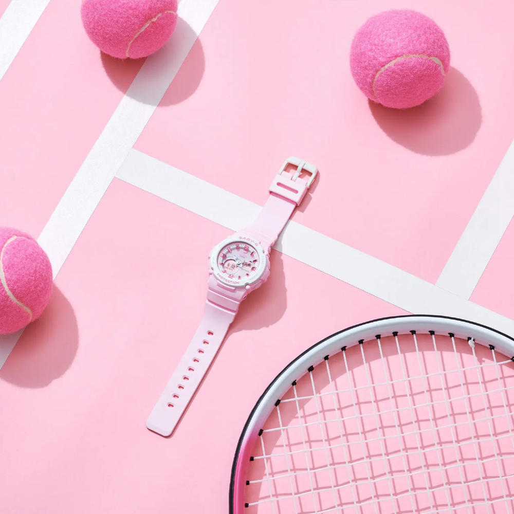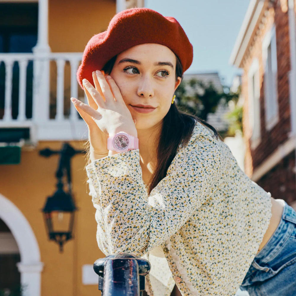 Spring into new beginnings and all the hopeful beauty that daisies signify. This flowery take on the iconic curves of the BGA-270FL-4ADR delivers a whole new charm. Sweet daisy accents and metallic index markings adorn the refreshingly chic monochromatic design. With shock-resistant construction and water resistance up to 100 meters, these delightful watches keep that spring in your step for all of your most active days.