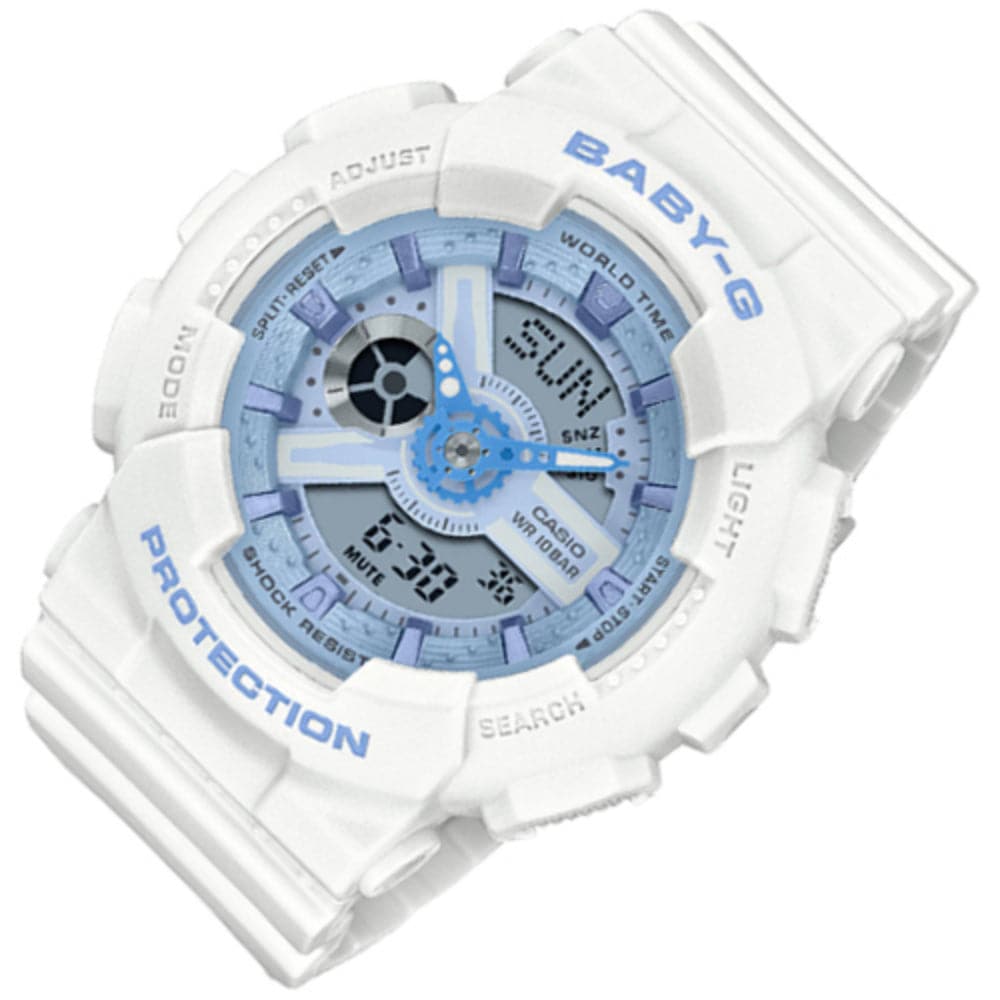 A standout in street fashion, this BABY-G delivers function, as well. Enjoy handy, reliable functions like LED lighting and stopwatch, as well as the shock and water resistance you count on.