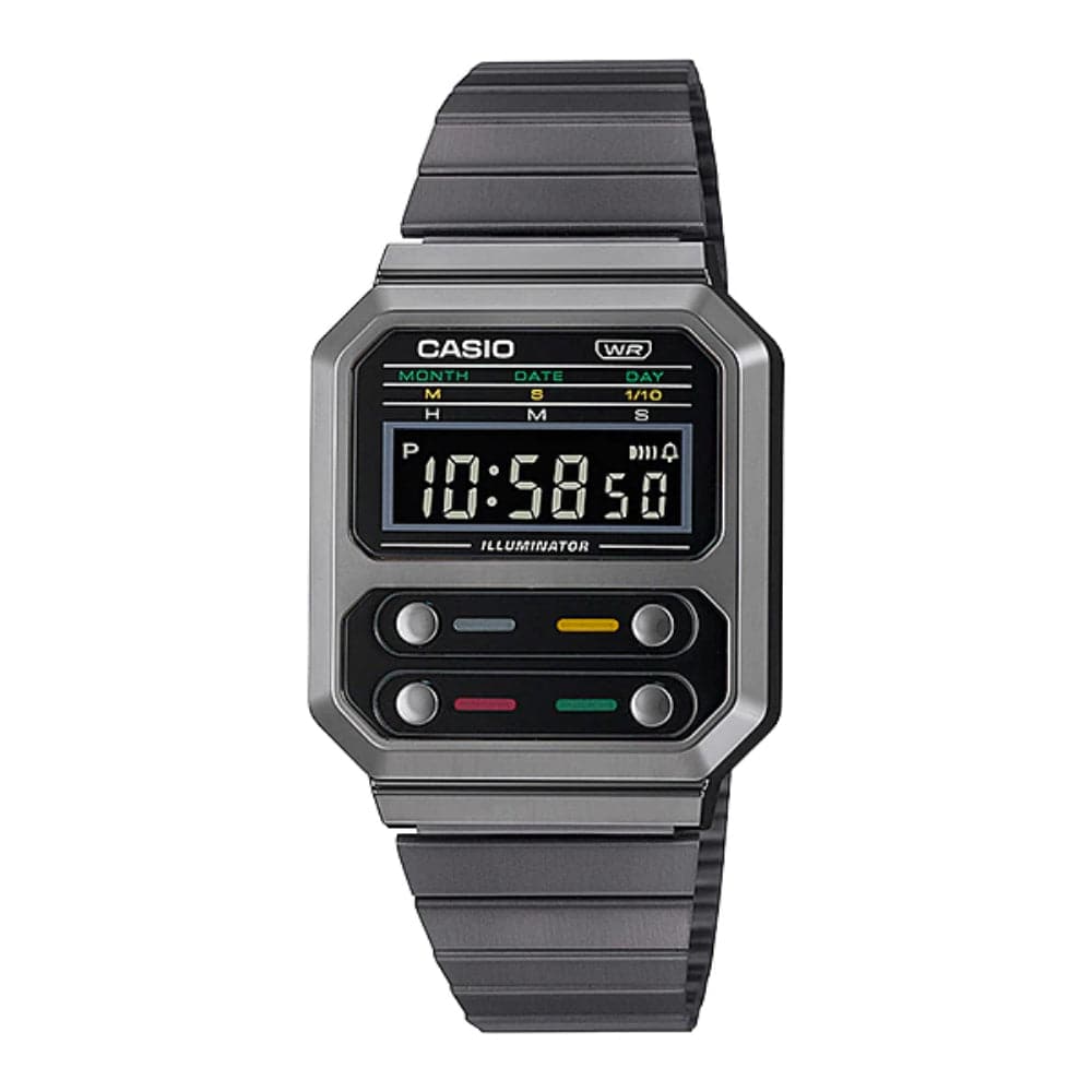 CASIO DIGITAL A100WEGG-1ADF-P SERIES RETRO-FUTURISTIC BLACK STAINLESS STEEL UNISEX WATCH