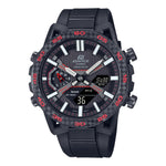 This sporty design is all about the EDIFICE motorsports concept, exuding speed and control as well as practical utility. Black ion plating delivers a scratch-resistant bezel, and the solar charging system stores enough power for 5 months of normal use when fully charged.