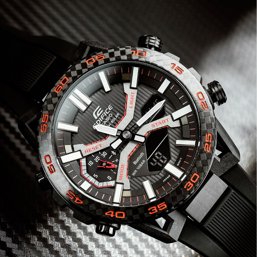 Take control of speed and intelligence with a solar-powered EDIFICE inspired by the sports car disc brake rotor.
