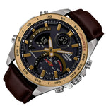 Introducing two new EDIFICE Smartphone Link Series digital-analog models with genuine leather bands. In addition to analog hands, these models have digital displays that present a variety of data in an easy-to-understand format. Bluetooth connectivity with a phone enables up-to-the-second timekeeping accuracy and simple World Time access to the current time in approximately 300 cities around the world.