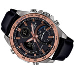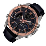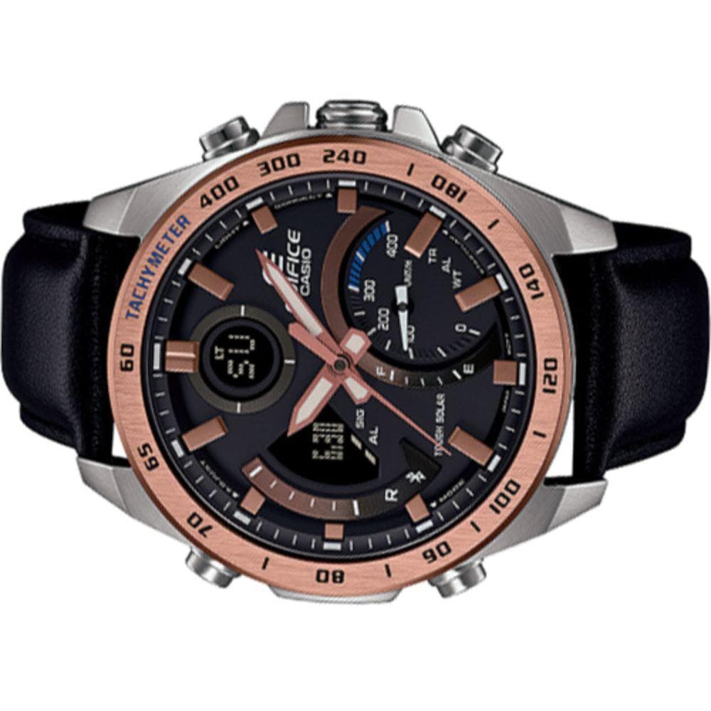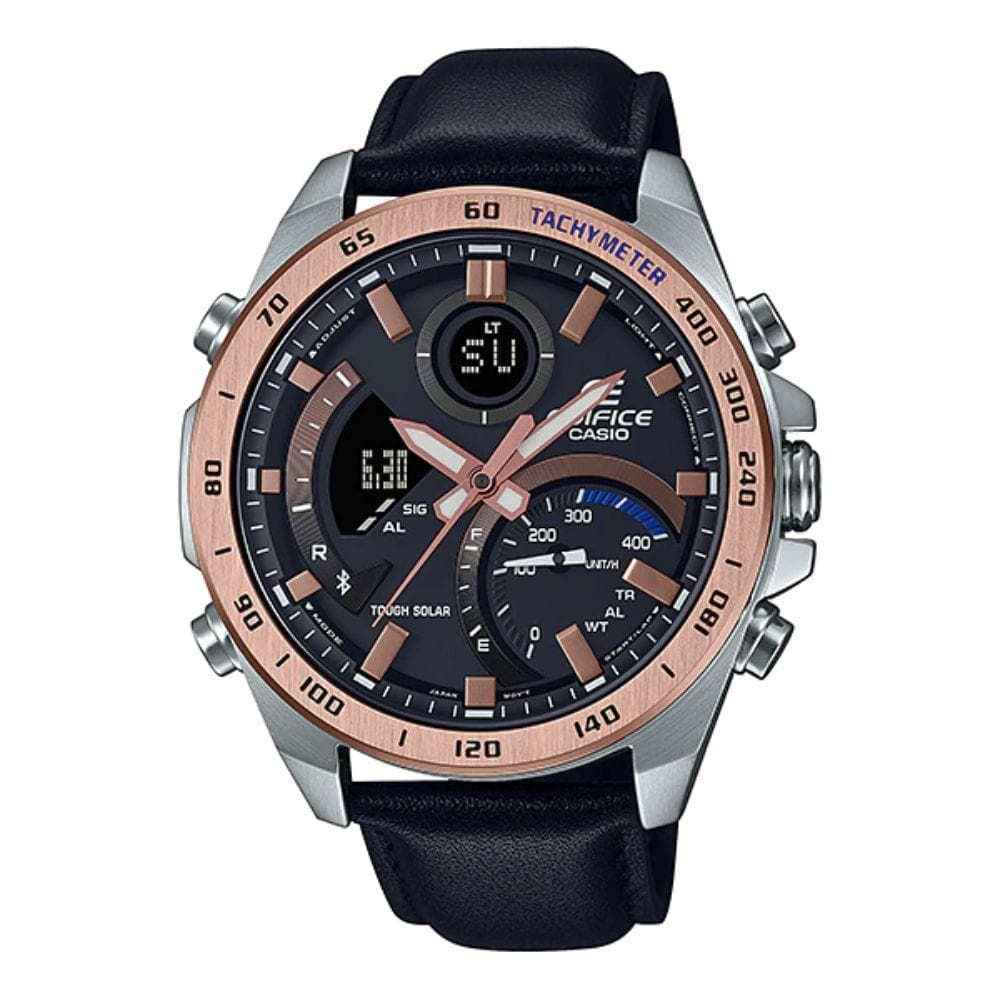 Introducing two new EDIFICE Smartphone Link Series digital-analog models with genuine leather bands. In addition to analog hands, these models have digital displays that present a variety of data in an easy-to-understand format. Bluetooth? connectivity with a phone enables up-to-the-second timekeeping accuracy and simple World Time access to the current time in approximately 300 cities around the world.